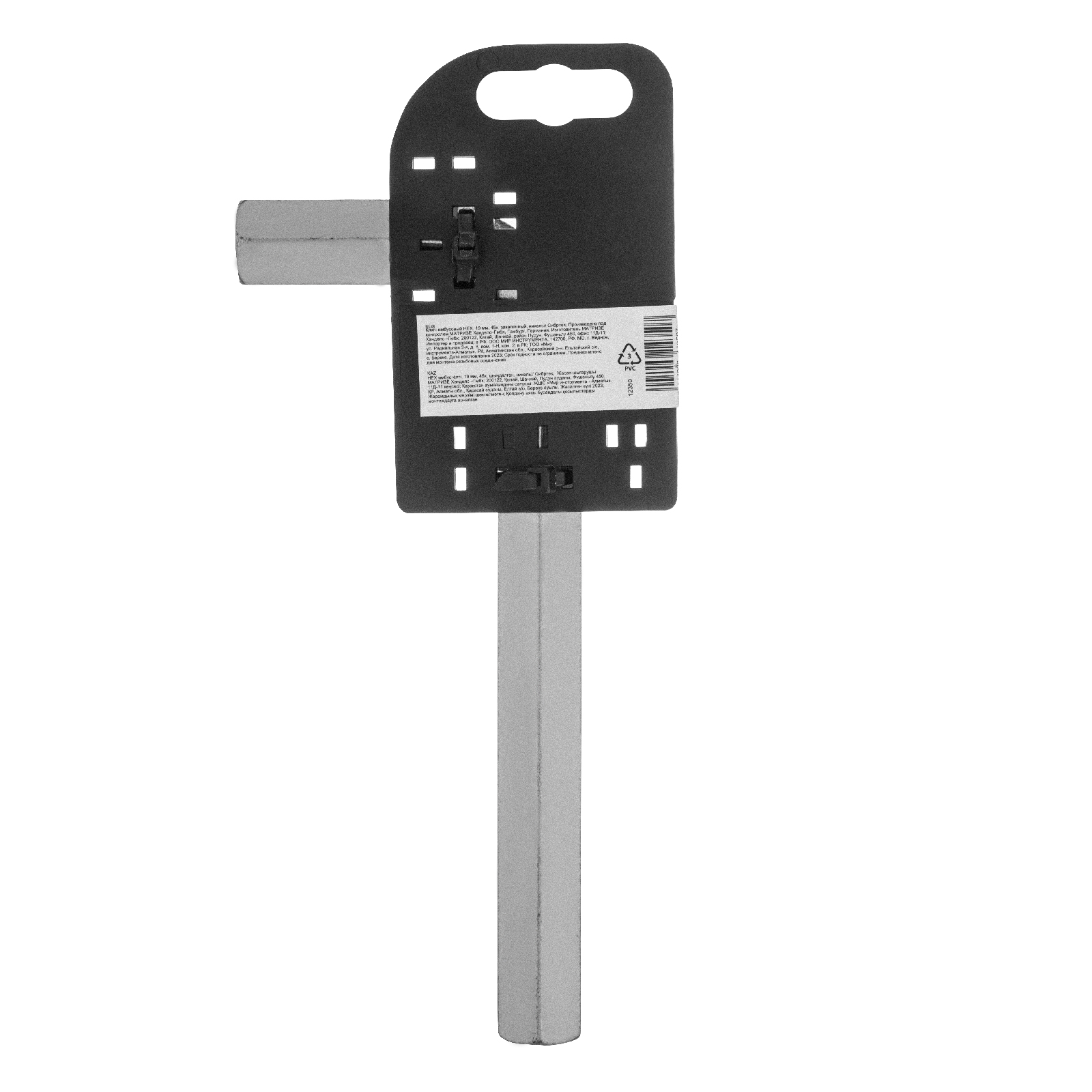 Ключ имбусовый никелированный Сибртех 12350 размером 19 мм, из закаленной стали 45Х, используется для монтажа и демонтажа резьбового крепежа с шестигранным шлицем HEX. Пригодится для сборки мебели, ремонта бытовой техники, велосипедов и автомобилей.