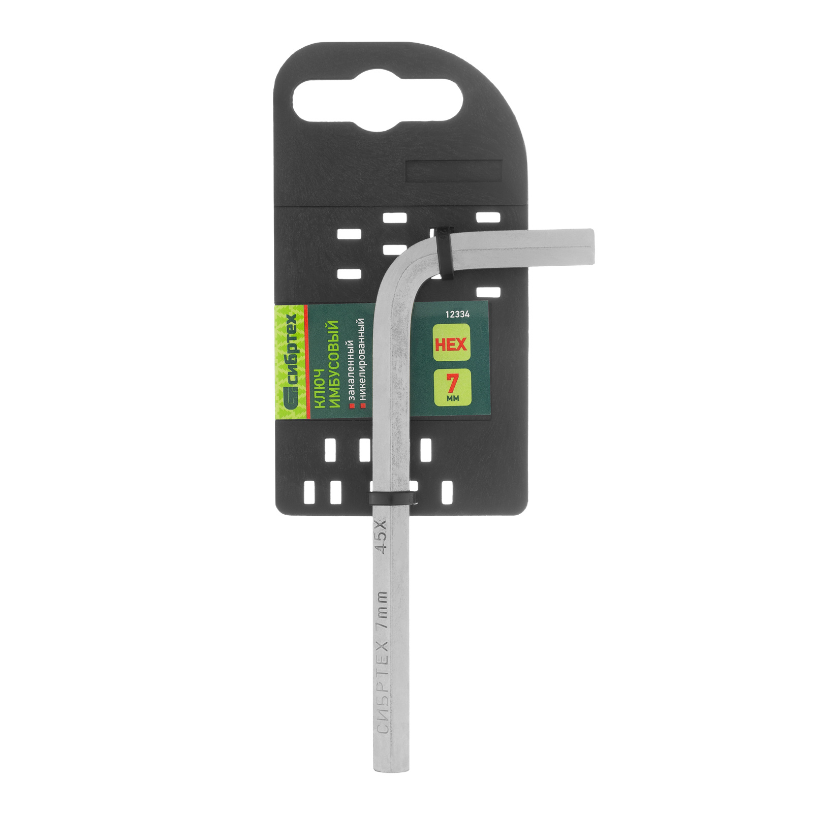 Ключ имбусовый никелированный Сибртех 12334 размером 7 мм, из закаленной стали 45Х, используется для монтажа и демонтажа резьбового крепежа с шестигранным шлицем HEX. Пригодится для сборки мебели, ремонта велосипедов, регулировки пластиковых окон и балконных дверей.