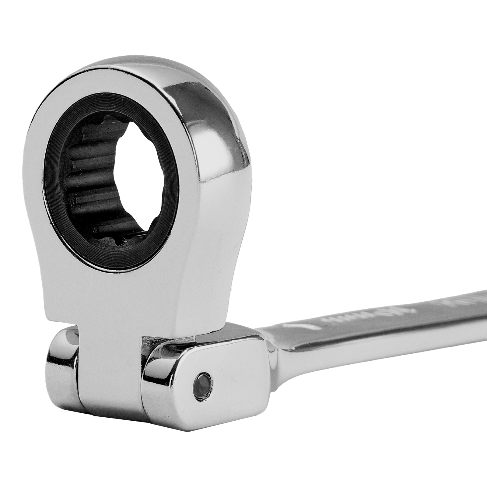 - Удобная работа в труднодоступных местах — храповой механизм на 72 зуба обеспечивает плавное вращение (шаг трещотки составляет 5°), а шарнир позволяет поворачивать рабочую часть под углом.