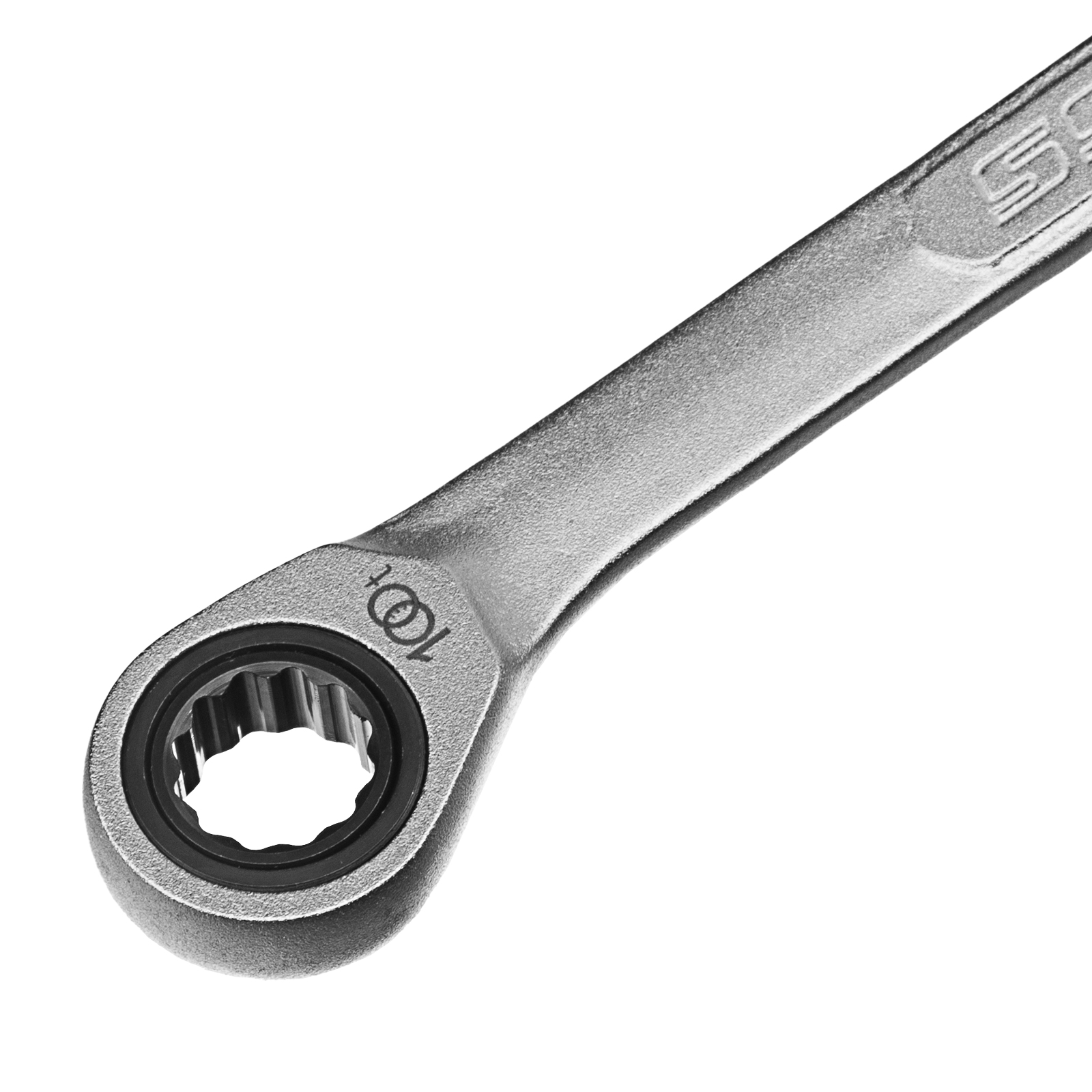 - Храповый механизм оснащен 100 зубцами, что обеспечивает плавность хода инструмента (шаг трещотки всего 3,6 градусов) и делает его удобным для работы в ограниченном пространстве.