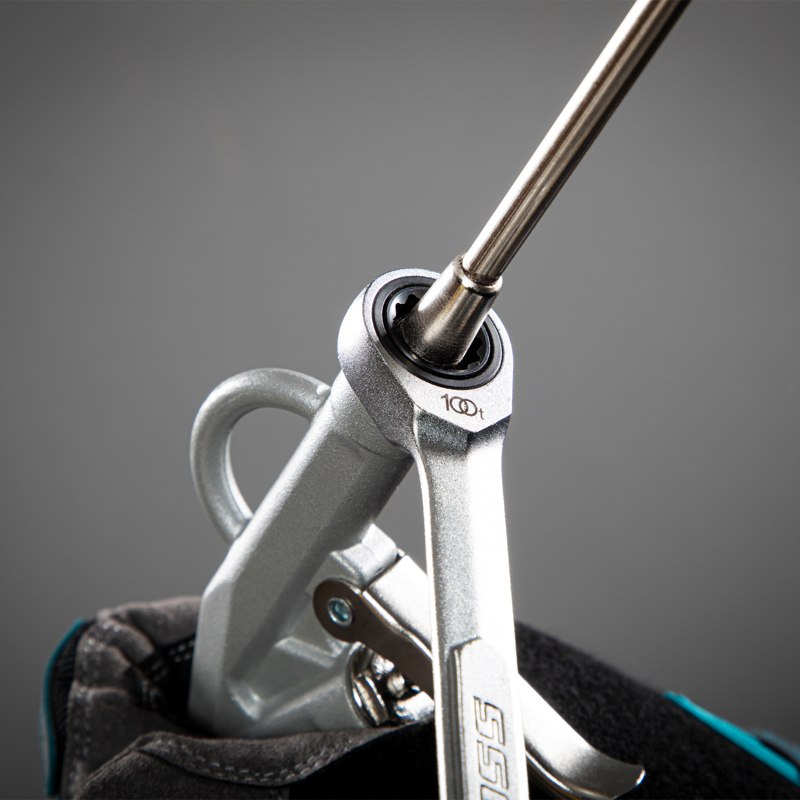 - Храповый механизм оснащен 100 зубцами, что обеспечивает плавность хода инструмента (шаг трещотки всего 3,6 градусов) и делает его удобным для работы в ограниченном пространстве.