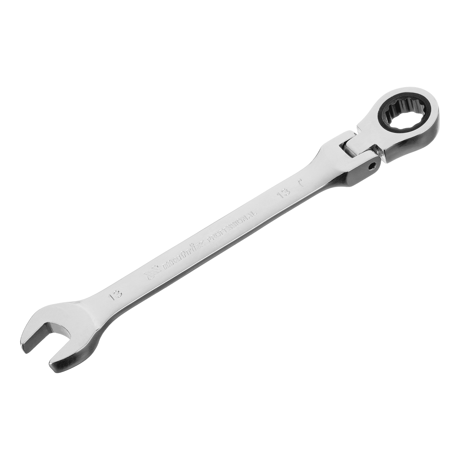 Ключ комбинированный трещоточный, 13 мм, CrV, шарнирный, зеркальный хром Matrix Professional в Воронеже