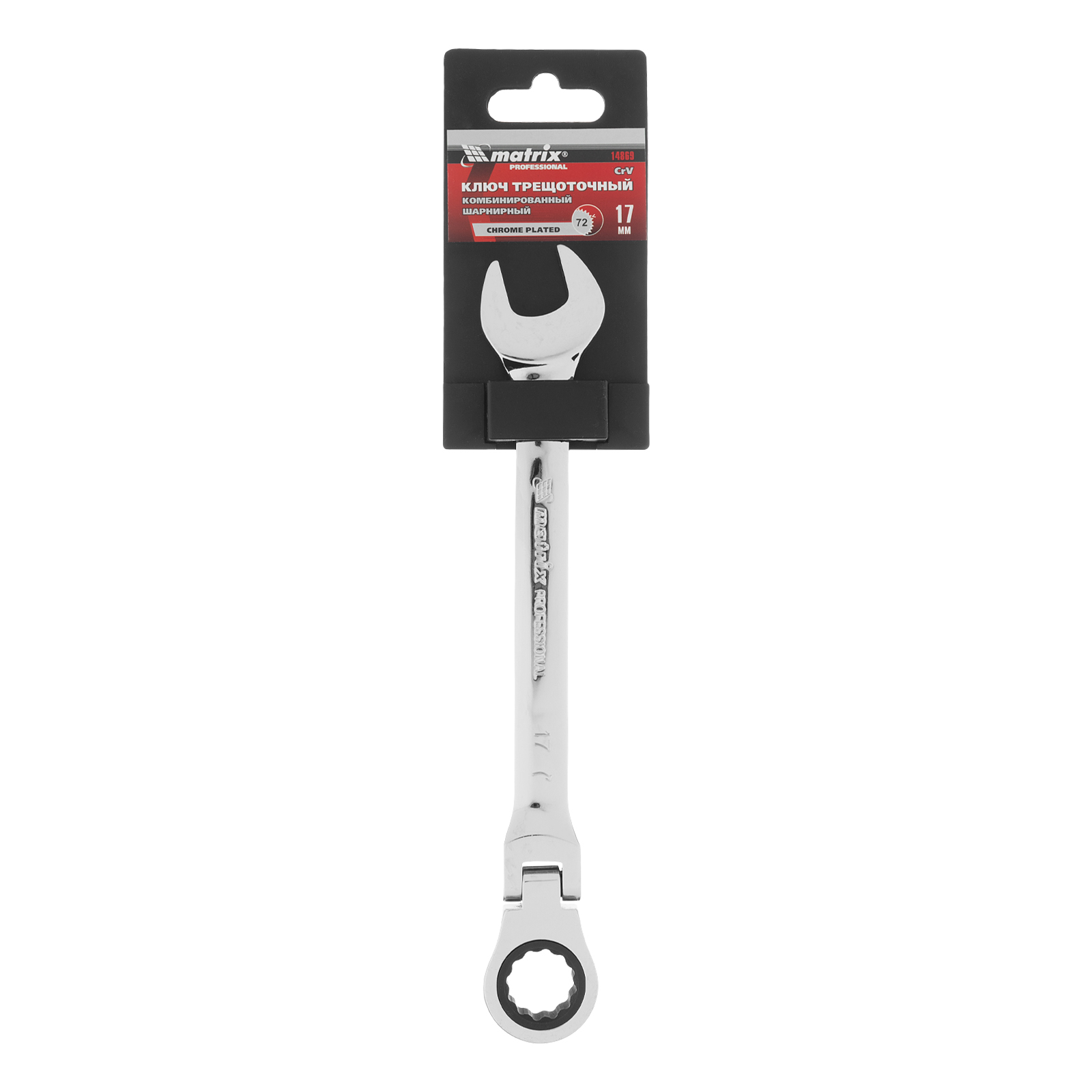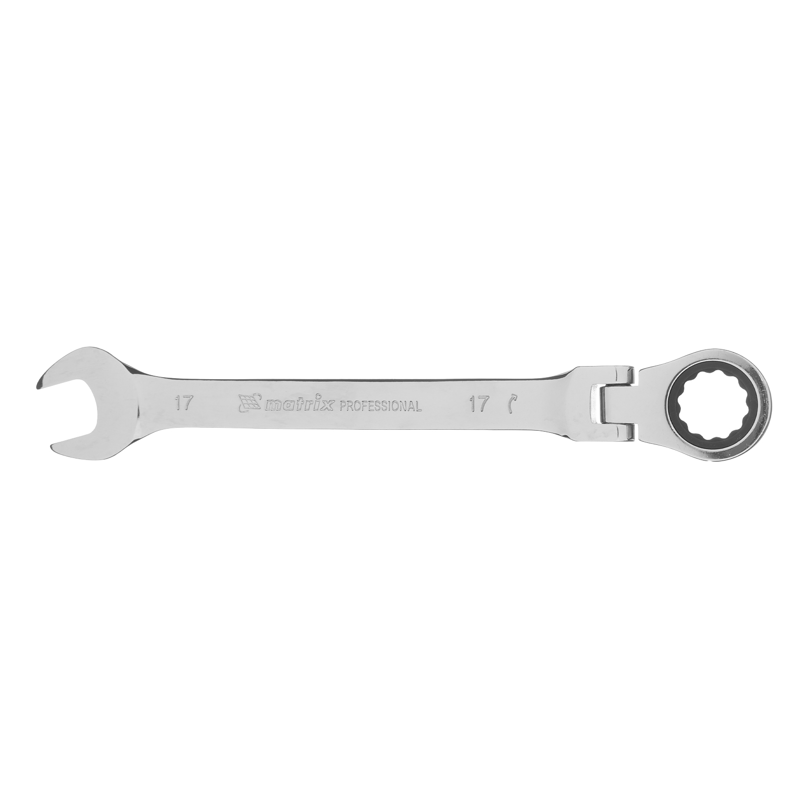 Ключ комбинированный трещоточный, 17 мм, CrV, шарнирный, зеркальный хром Matrix Professional в Воронеже