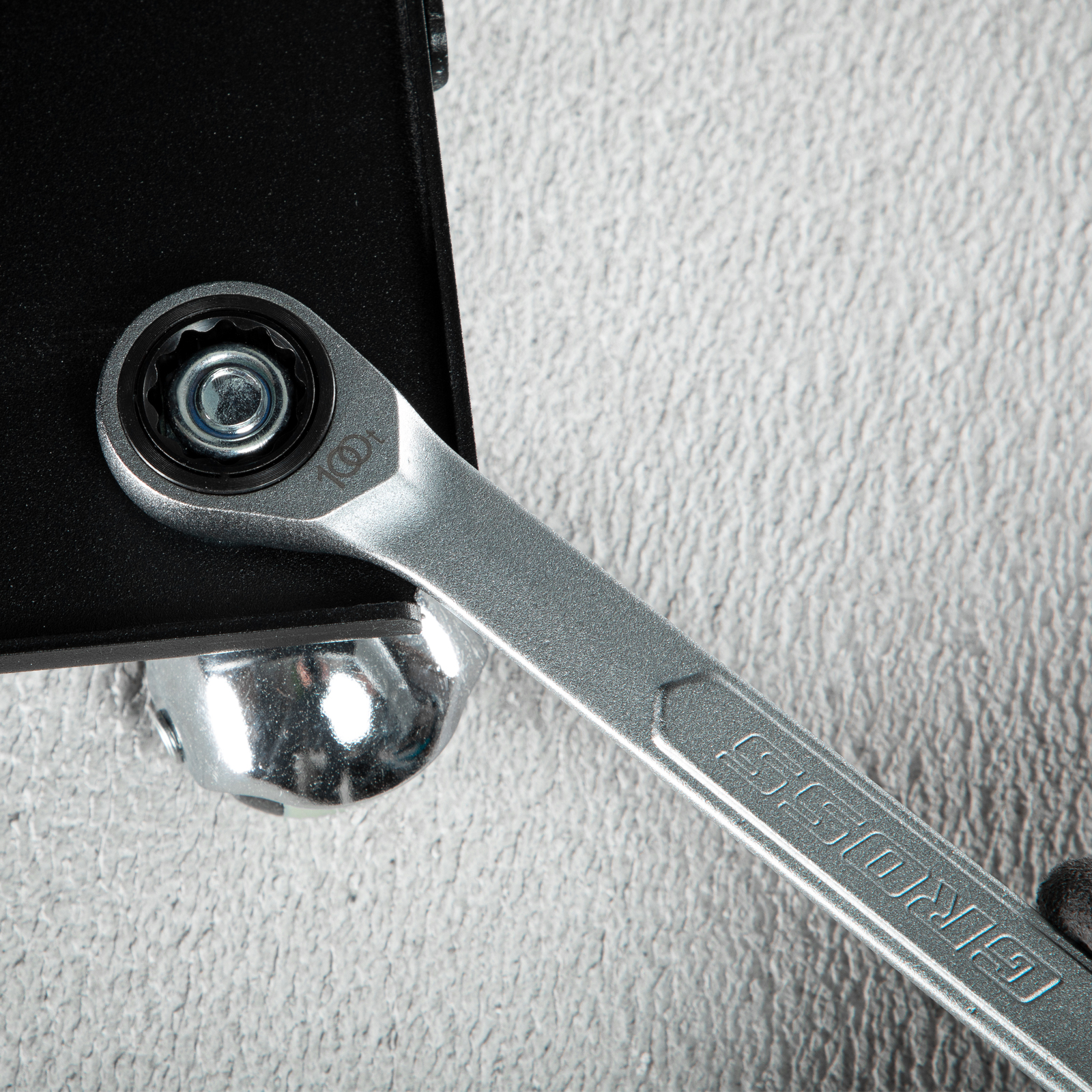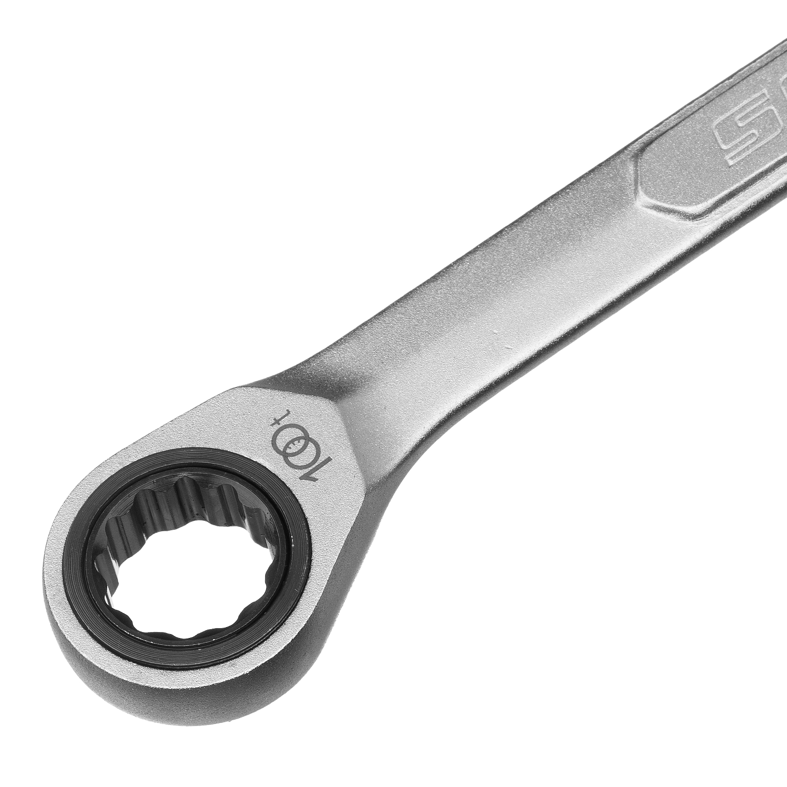 - Храповый механизм оснащен 100 зубцами, что обеспечивает плавность хода инструмента (шаг трещотки всего 3,6 градусов) и делает его удобным для работы в ограниченном пространстве.