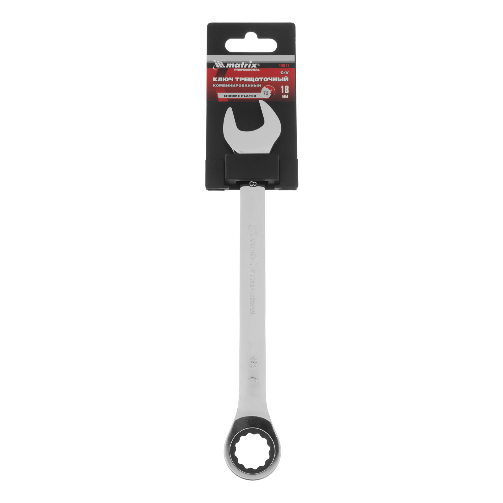 Ключ комбинированный трещоточный, 18 мм, CrV, зеркальный хром Matrix Professional в Воронеже