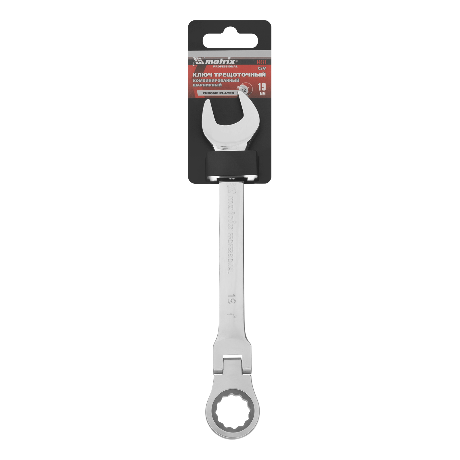 Ключ комбинированный трещоточный, 19 мм, CrV, шарнирный, зеркальный хром Matrix Professional в Воронеже