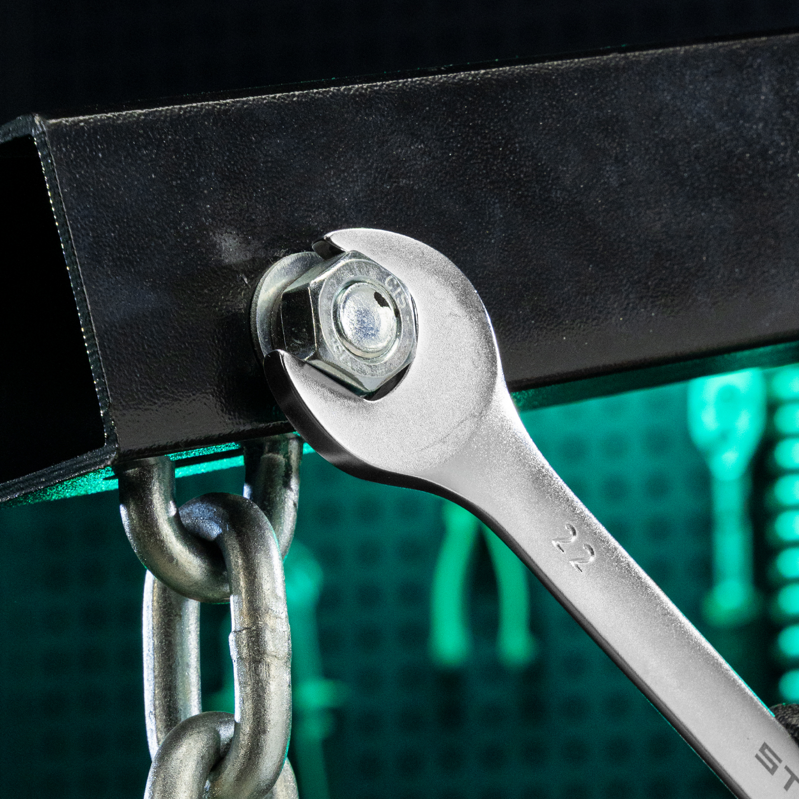 - Высокий показатель прочности — ключ изготовлен из стали хромованадиевой группы, рабочая часть закалена до твердости 45 HRC.
