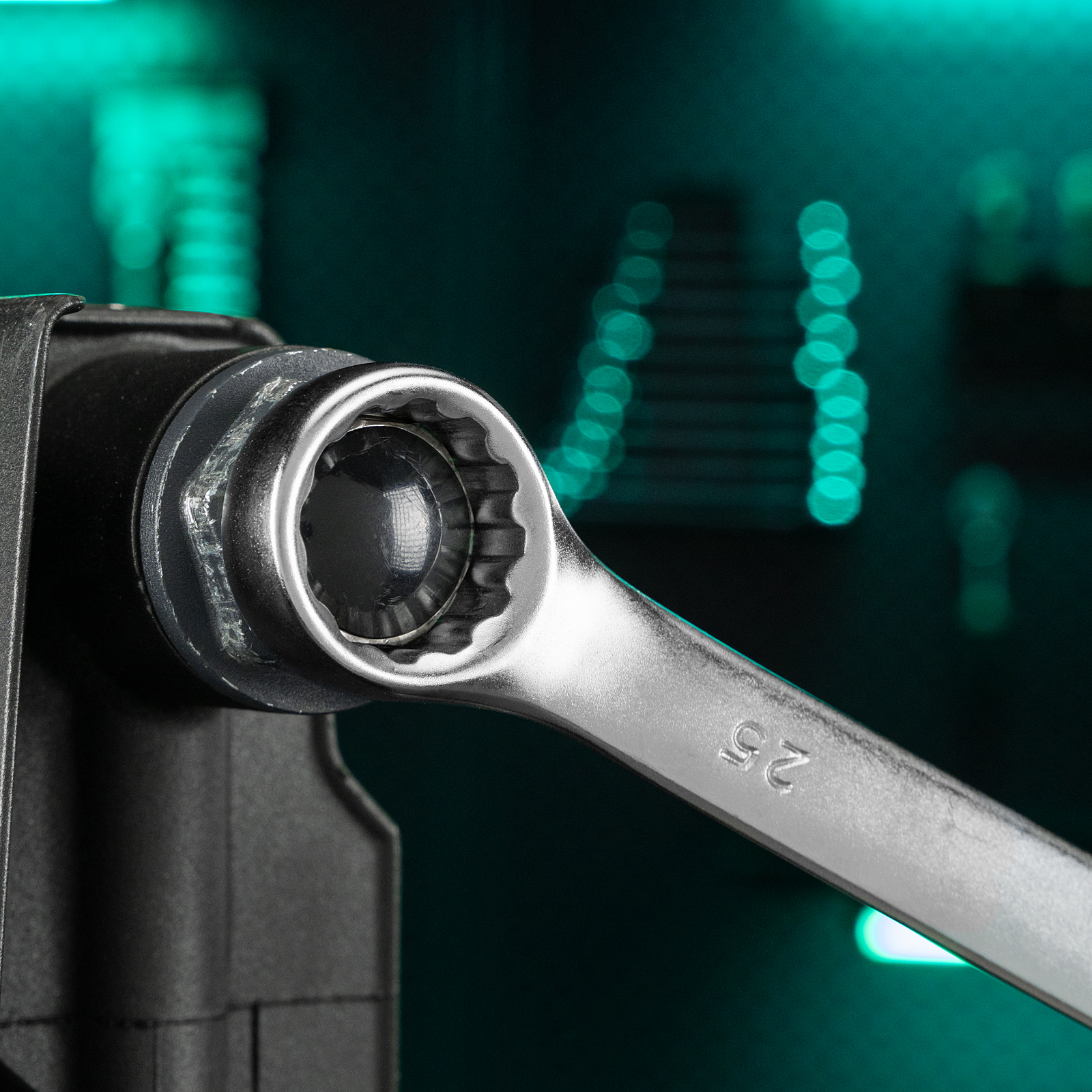 - Комфорт при монтаже в труднодоступных местах — кольцевой зев наклонен под углом в 15 градусов к плоскости ключа.