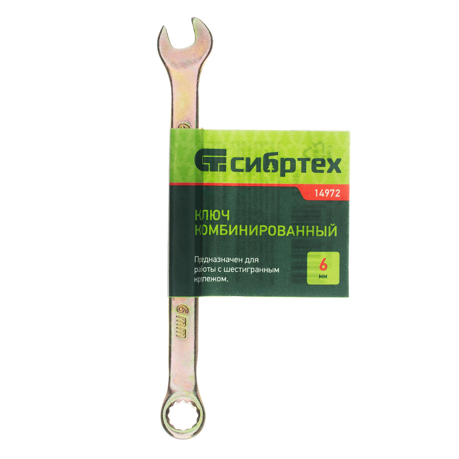 Ключ комбинированный, 6 мм, желтый цинк Сибртех в Воронеже