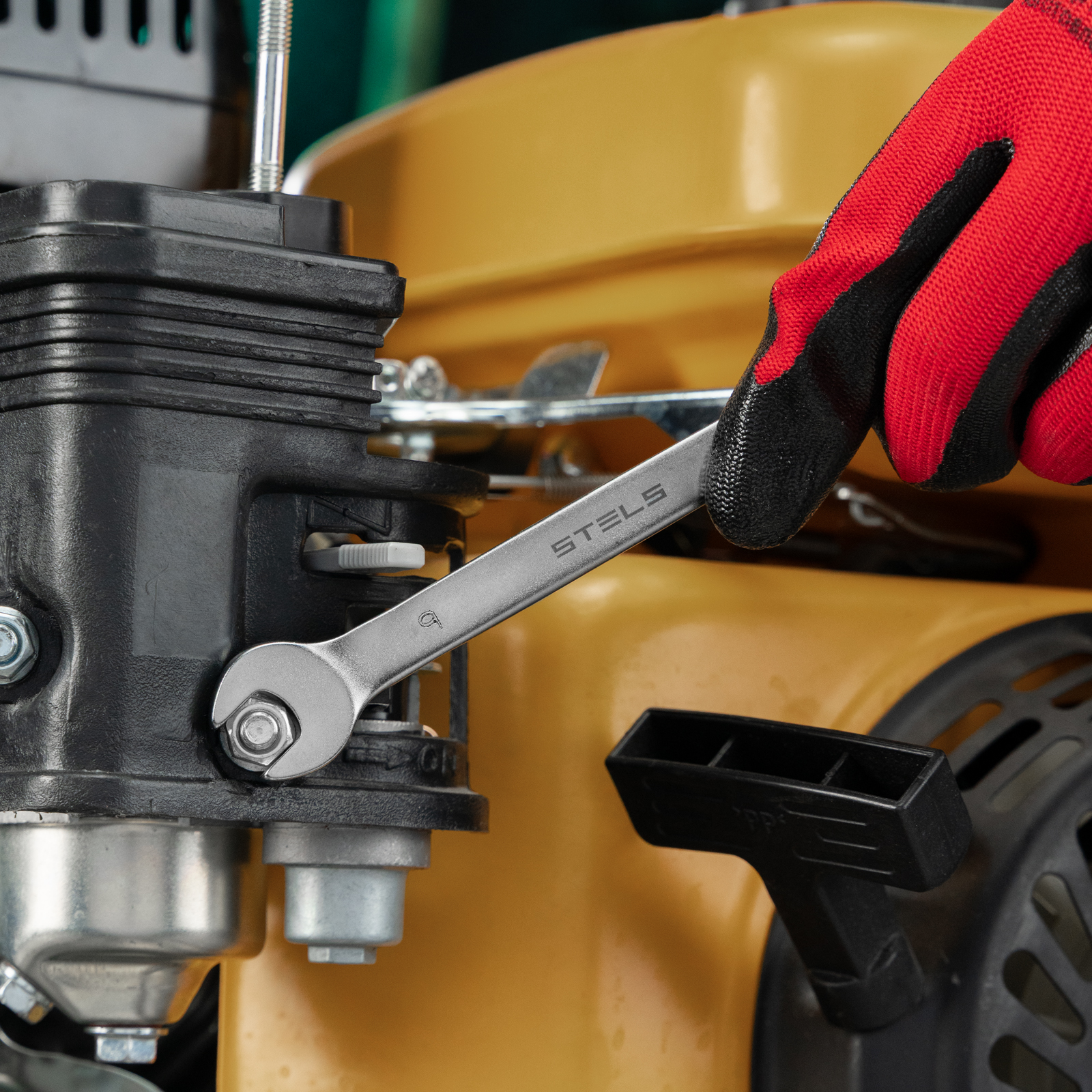 Комбинированный ключ Stels 15205 из стали CrV, 9 мм, покрытый матовым хромом, используется для закручивания и откручивания гаечных и болтовых соединений. Накидная головка имеет 12-гранную внутреннюю поверхность, что облегчает работу с крепежом и уменьшает опасность его повреждения. Ключ применяется в слесарных мастерских и автосервисах, а также будет полезен для решения бытовых задач.