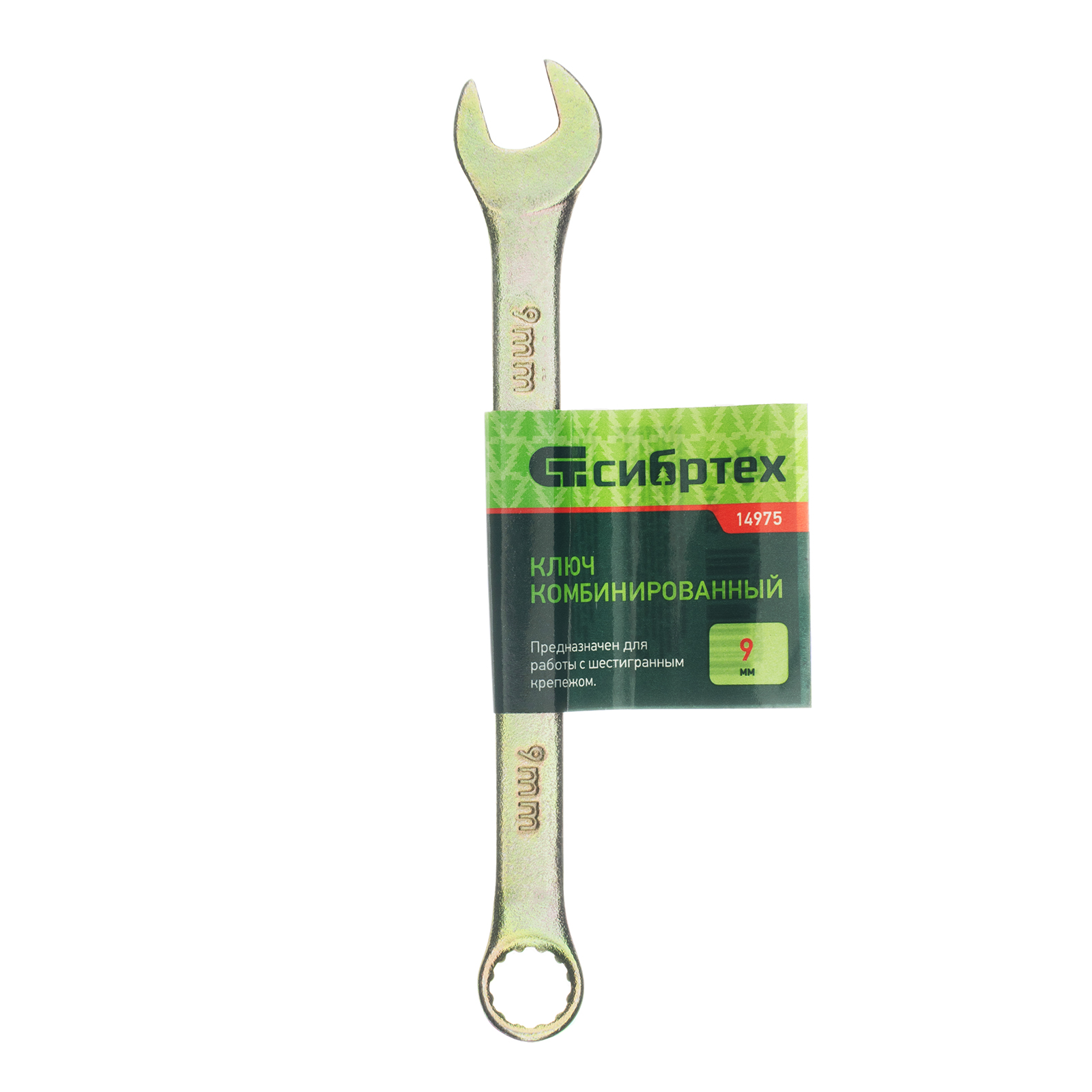 Ключ комбинированный, 9 мм, желтый цинк Сибртех в Воронеже