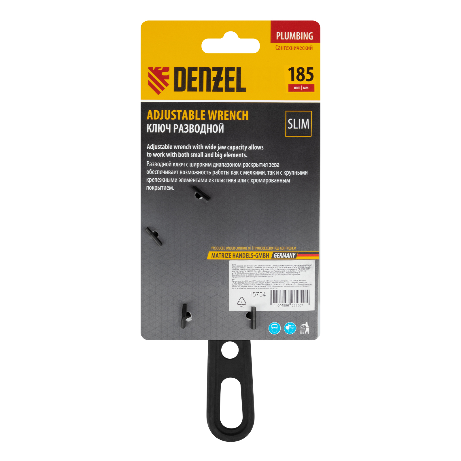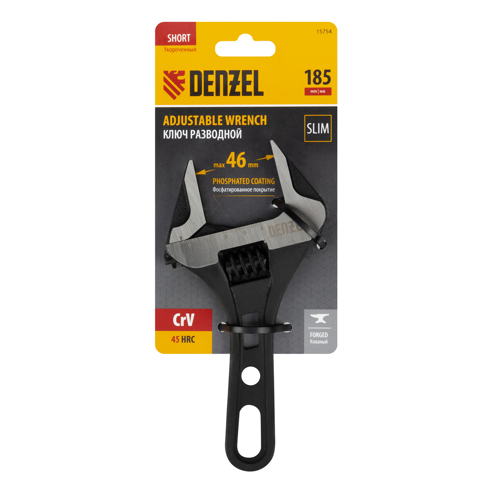 Ключ разводной 185 мм, CrV, кованый, укороченная рукоятка Denzel в Воронеже