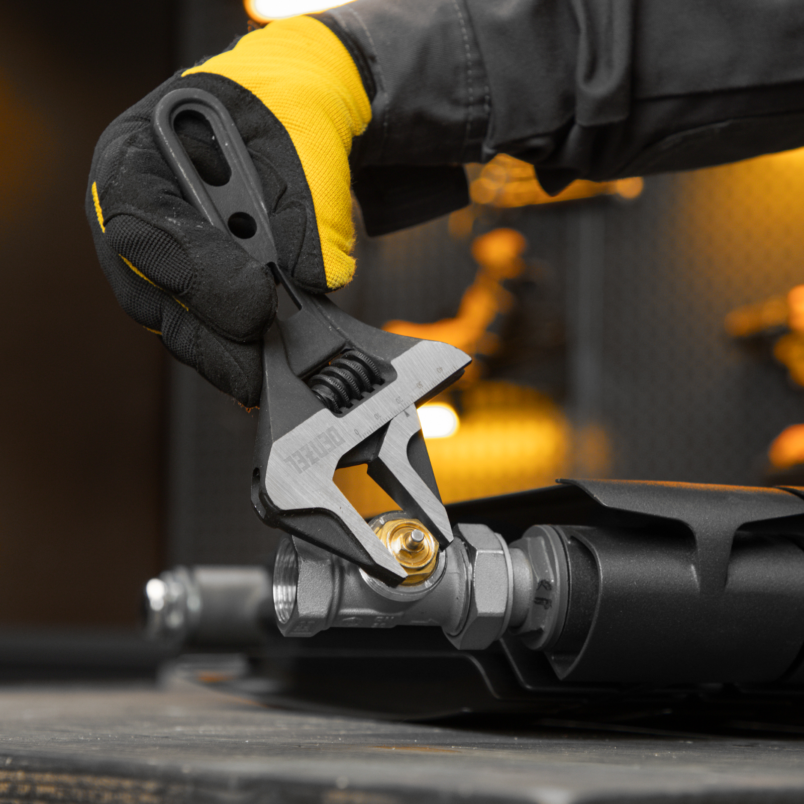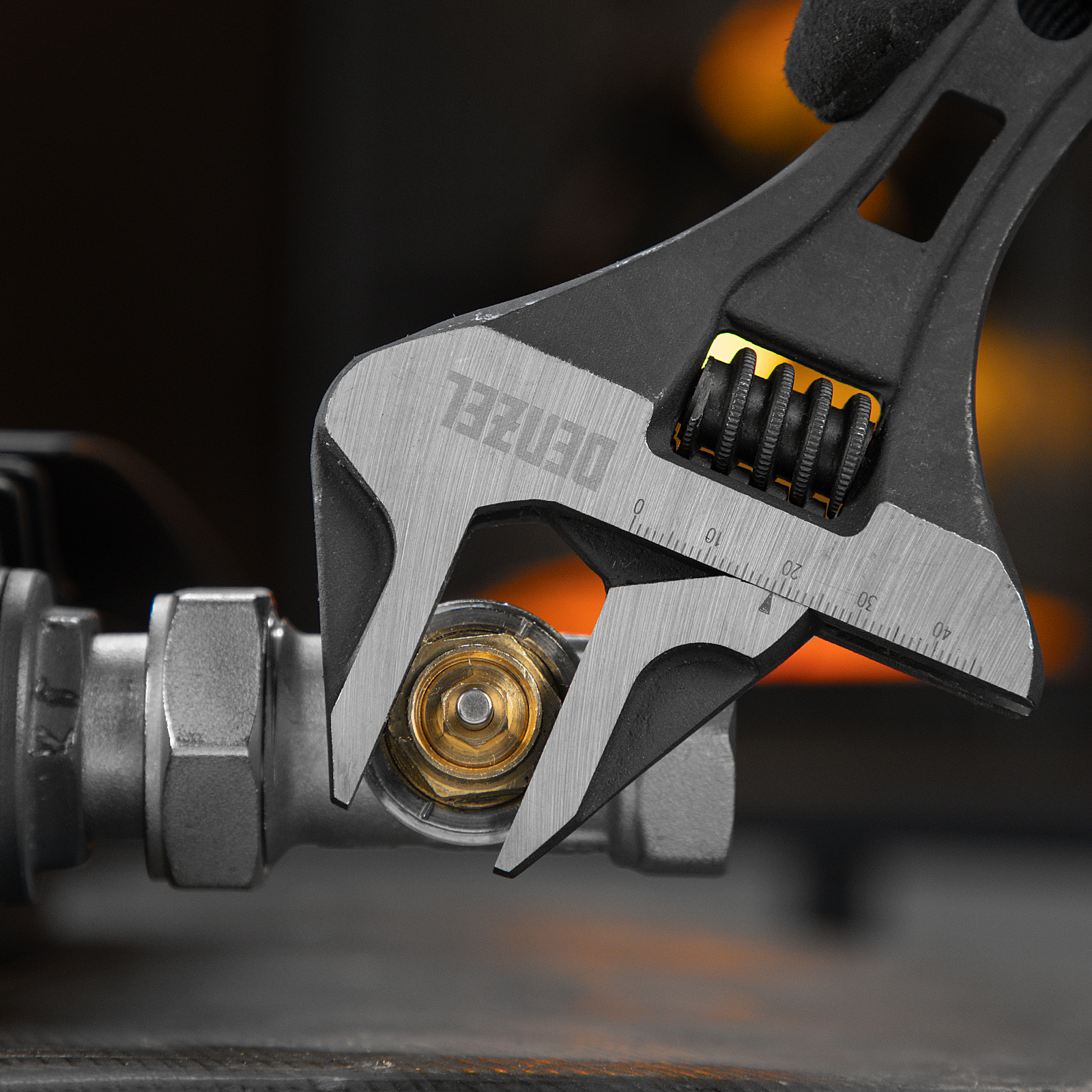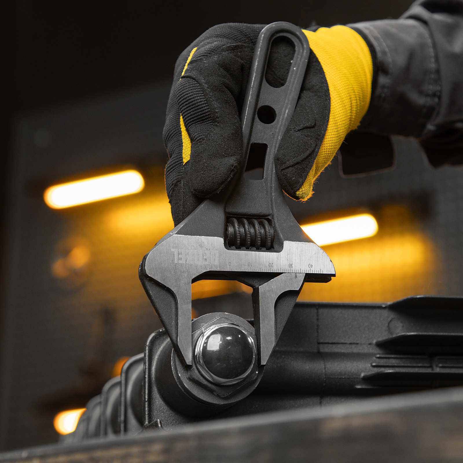 - Удобная эксплуатация — метрическая линейка на ключе помогает выставить нужный размах зева.