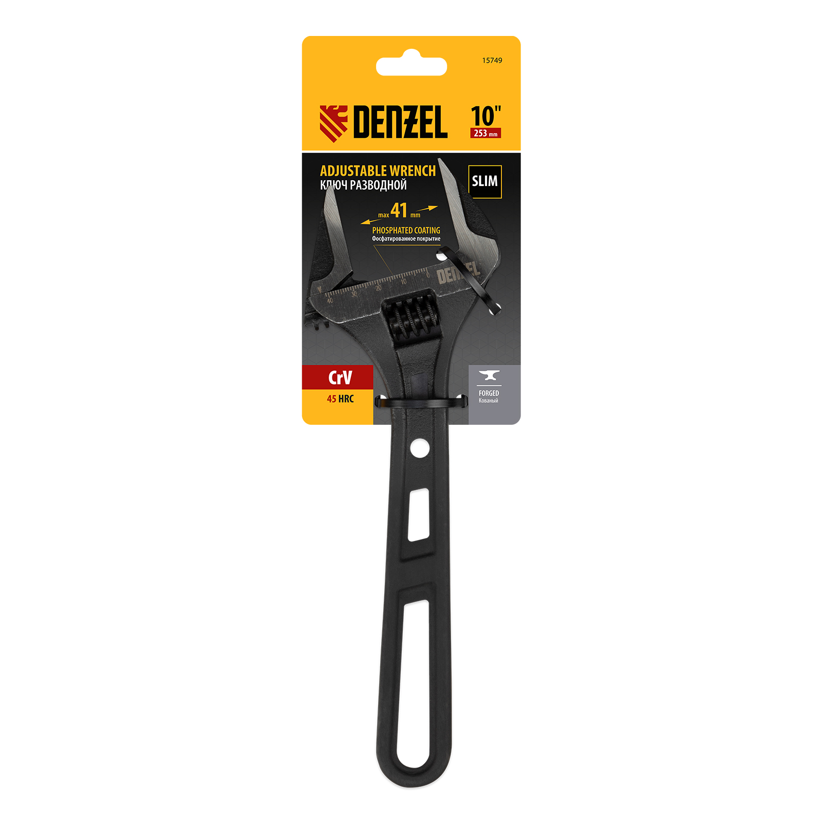Ключ разводной, 250 мм, CrV, кованый Denzel в Воронеже