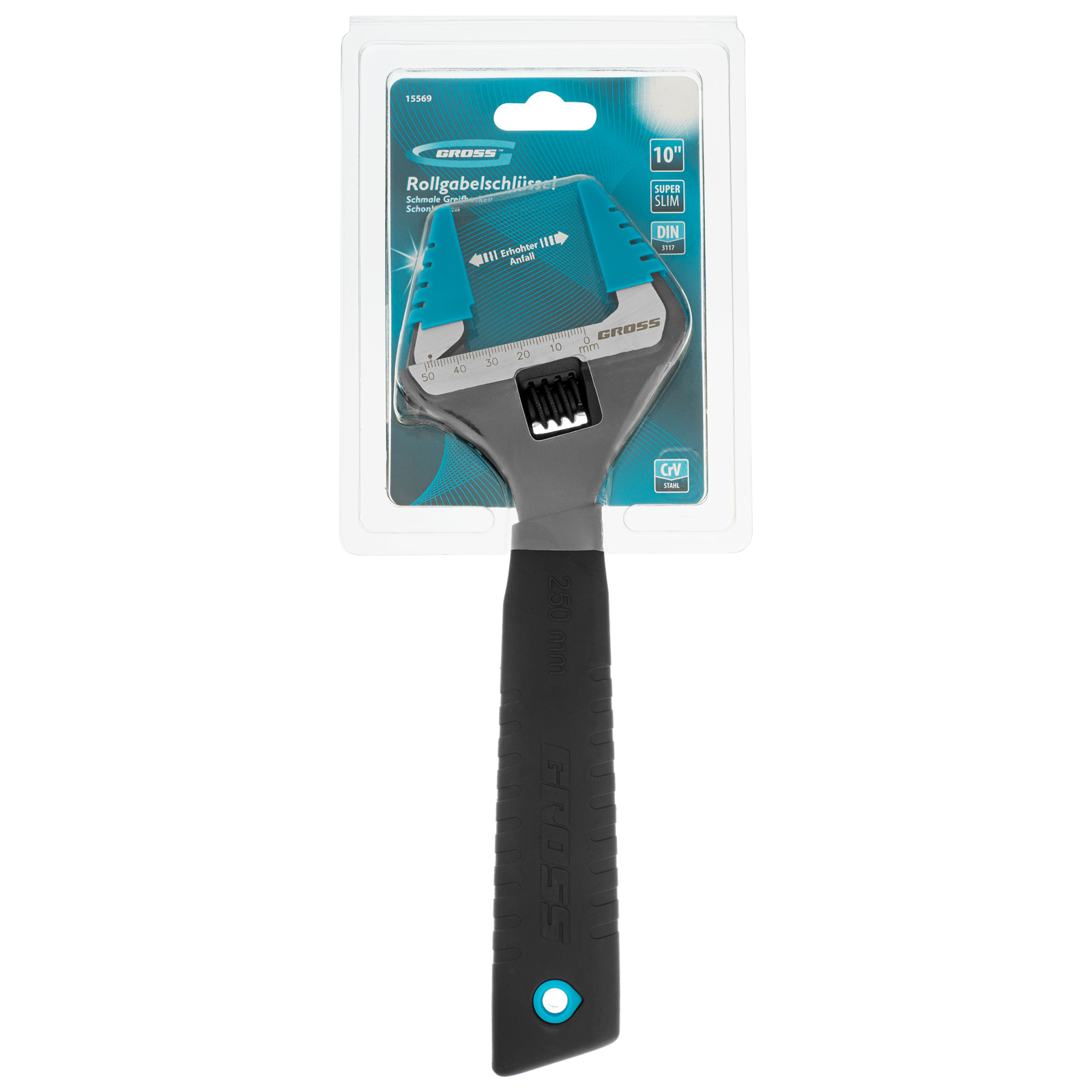 Разводной ключ Gross 15569 из стали CrV, длиной 250 мм, с тонкими губками и защитными насадками, обеспечивает ширину раскрытия губок на 30% больше, чем у стандартных моделей. Инструмент подходит для монтажа и демонтажа крепежных элементов диаметром до 50 мм. Применяется для сантехнических работ, ремонта автомобилей, решения бытовых задач. Тонкие губки легко проникают в труднодоступные места, а также удобны для захвата мелких деталей.