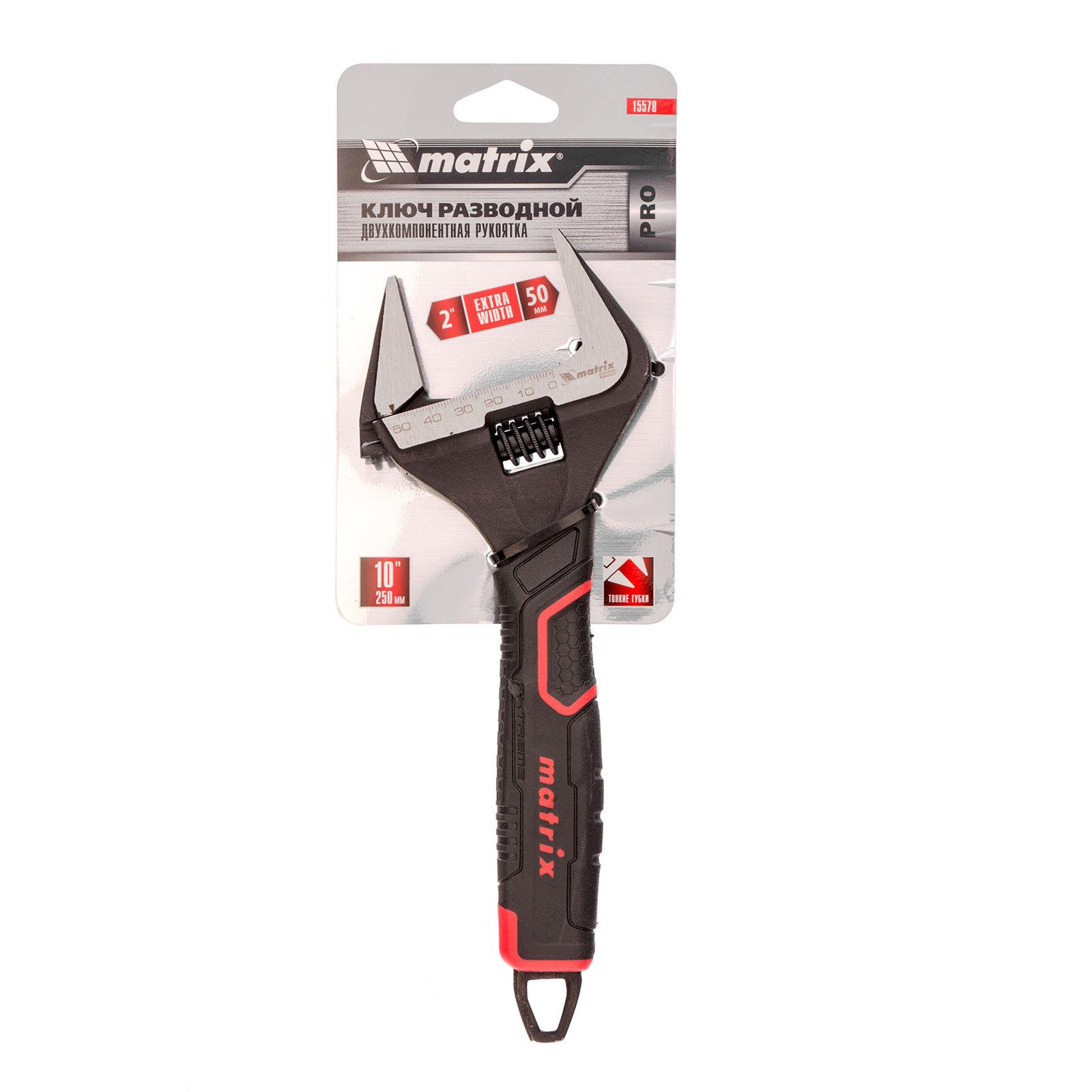 Ключ разводной, тонкие губки, фосфатированный, двухкомпонентная рукоятка, 250 мм, PRO Matrix в Воронеже