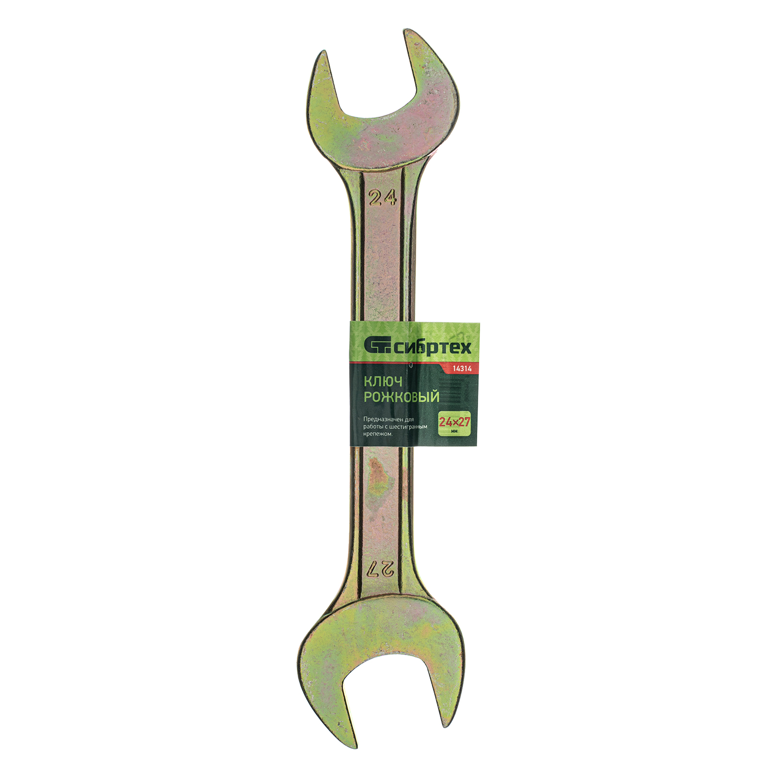 Ключ рожковый, 24 х 27 мм, желтый цинк Сибртех в Воронеже