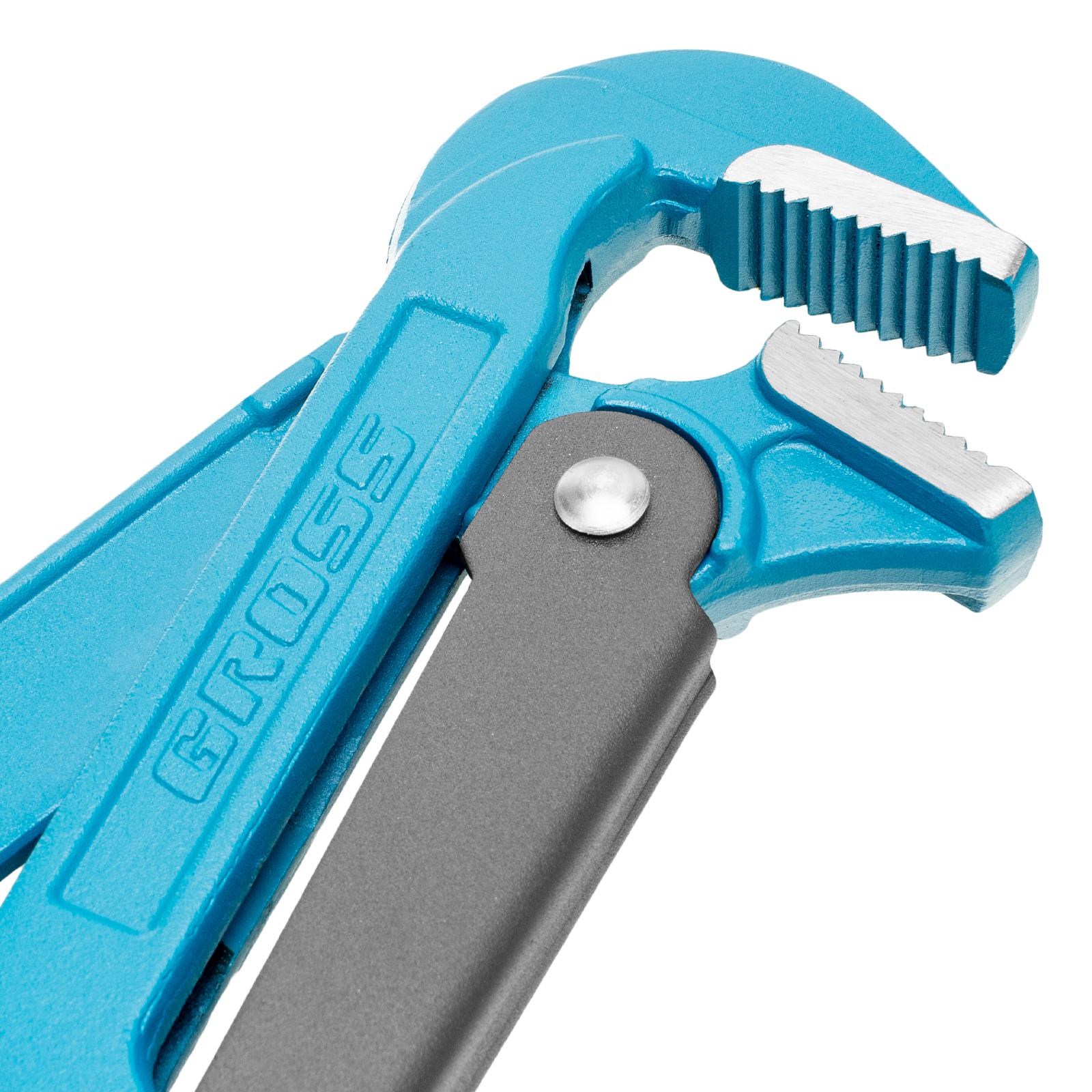 - Самоблокируемый захват труб и деталей — зубья прогрессивной формы наклонены против направления вращения.