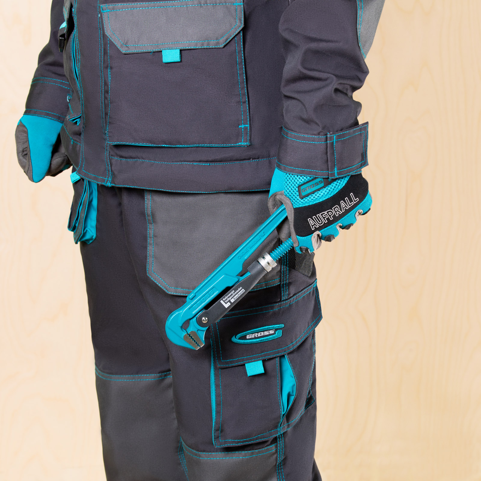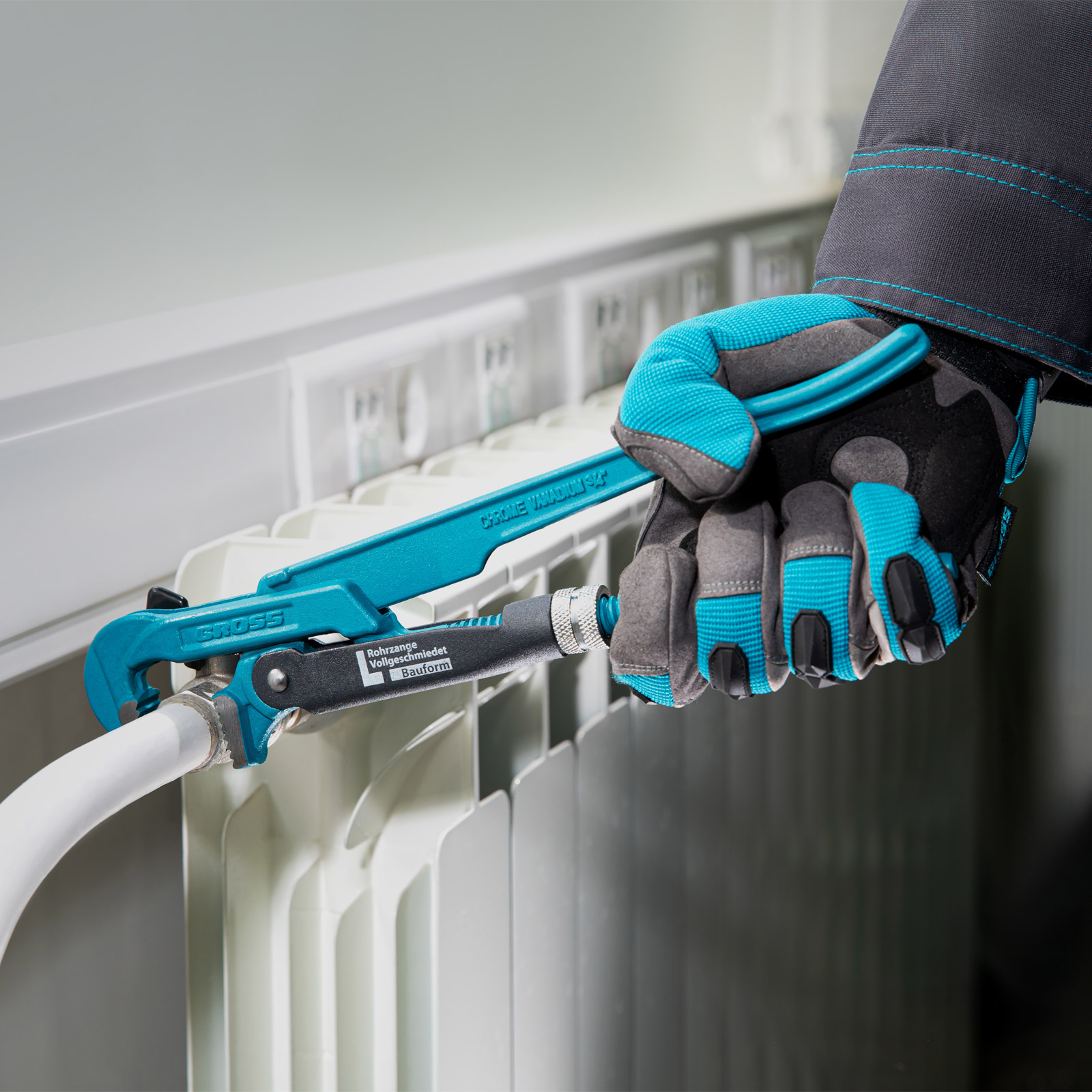 - Самоблокируемый захват труб и деталей — зубья прогрессивной формы наклонены против направления вращения.