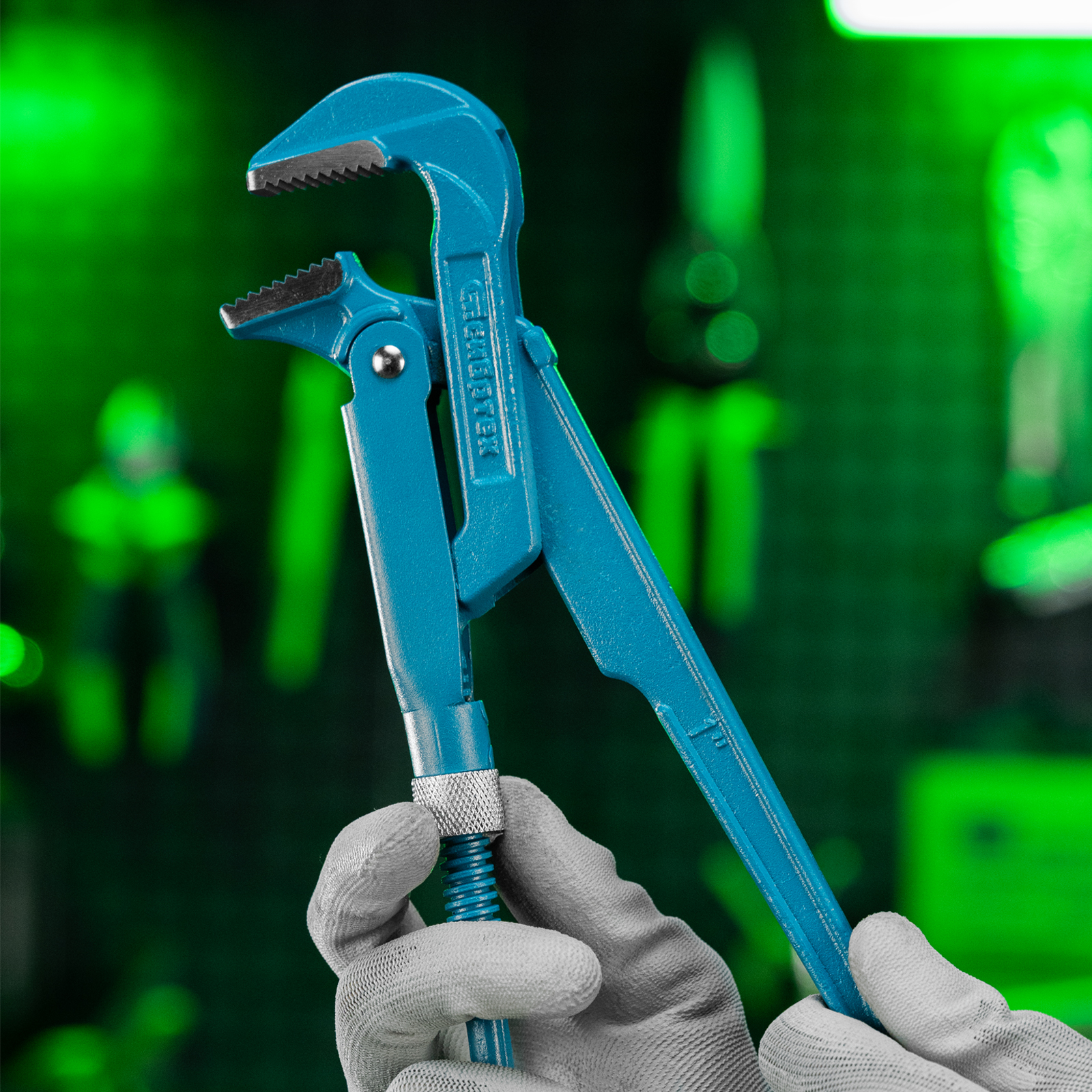 - Прочность и долговечность — литая конструкция из закаленной легированной стали устойчива к нагрузке кручения, губки закалены до твердости 48-52 HRC.