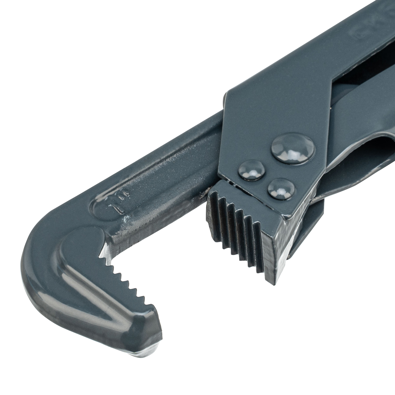 - Прочность и долговечность — кованая конструкция из закаленной легированной стали обеспечивает высокий рабочий ресурс, губки закалены до твердости 48-52 HRC.