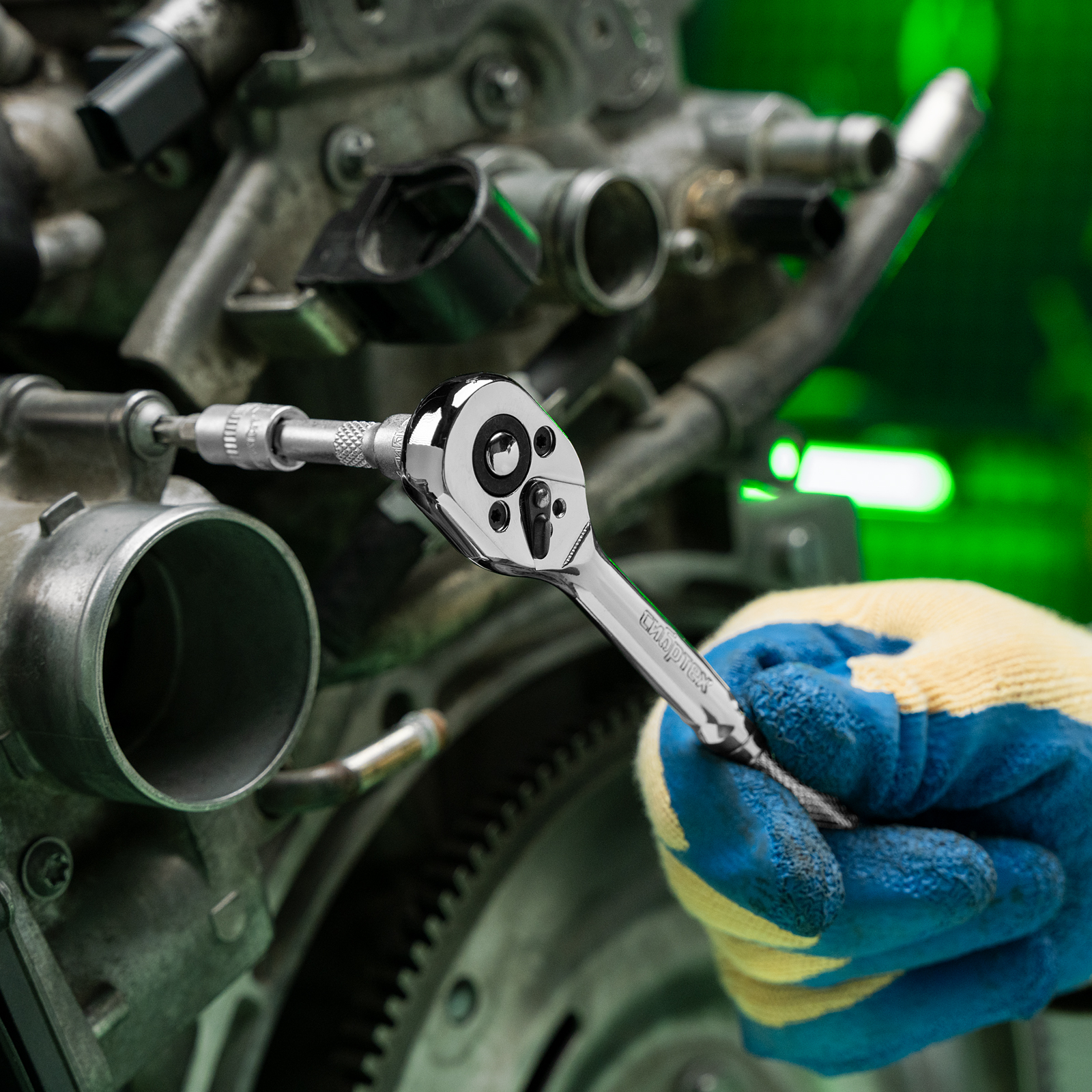 - Функция реверса — при помощи переключателя с металлическим флажком можно одним движением изменить направление вращения трещотки.