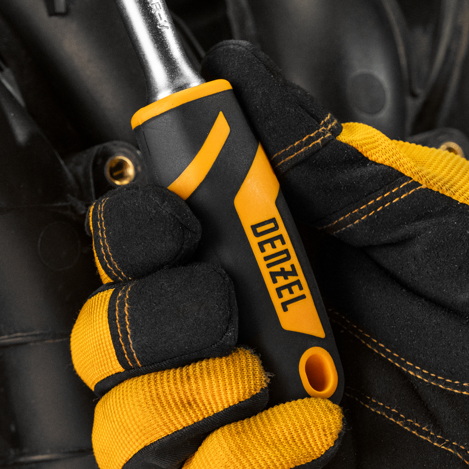 - Работа в сложных условиях — двухкомпонентная рукоятка характеризуется масло- и бензостойкостью.
