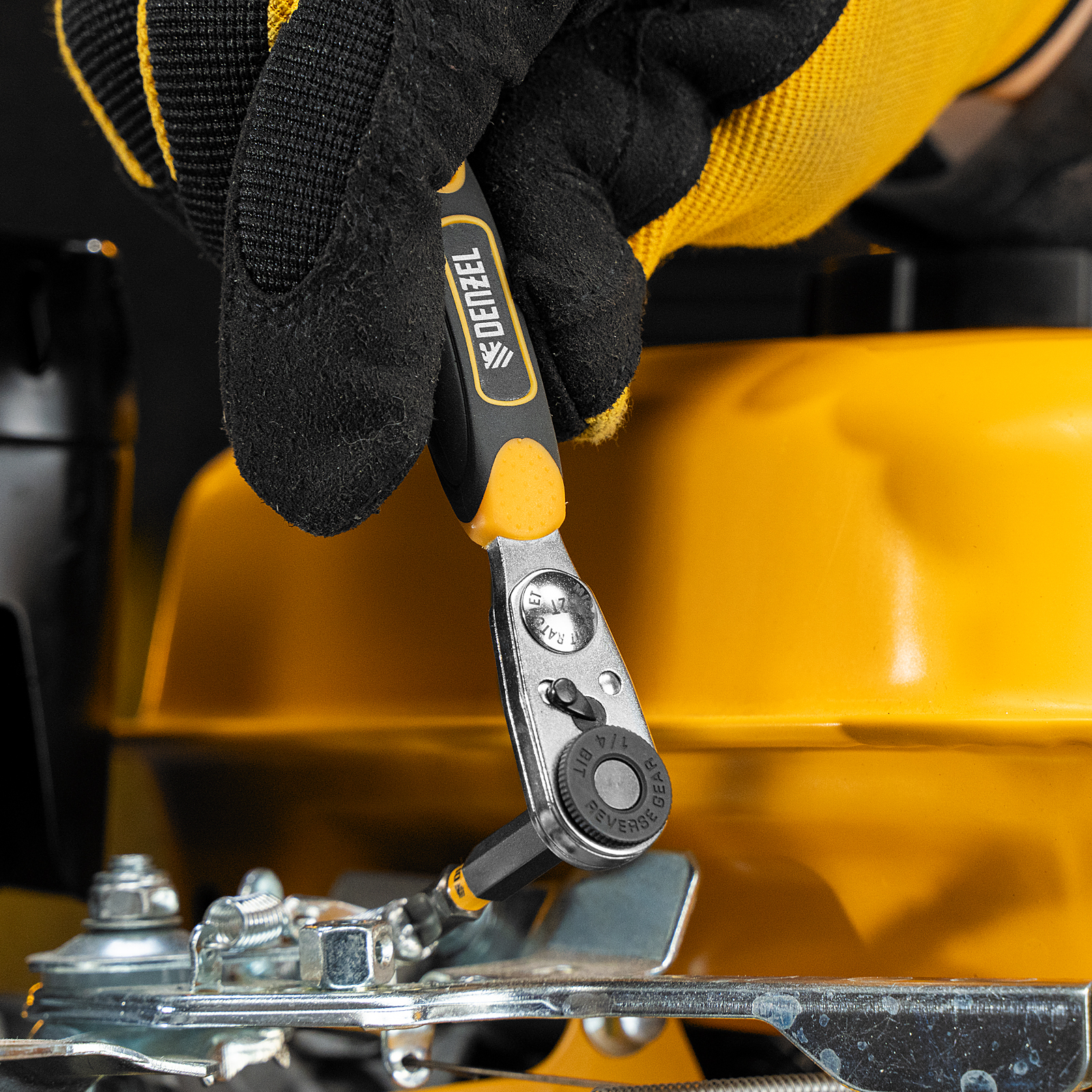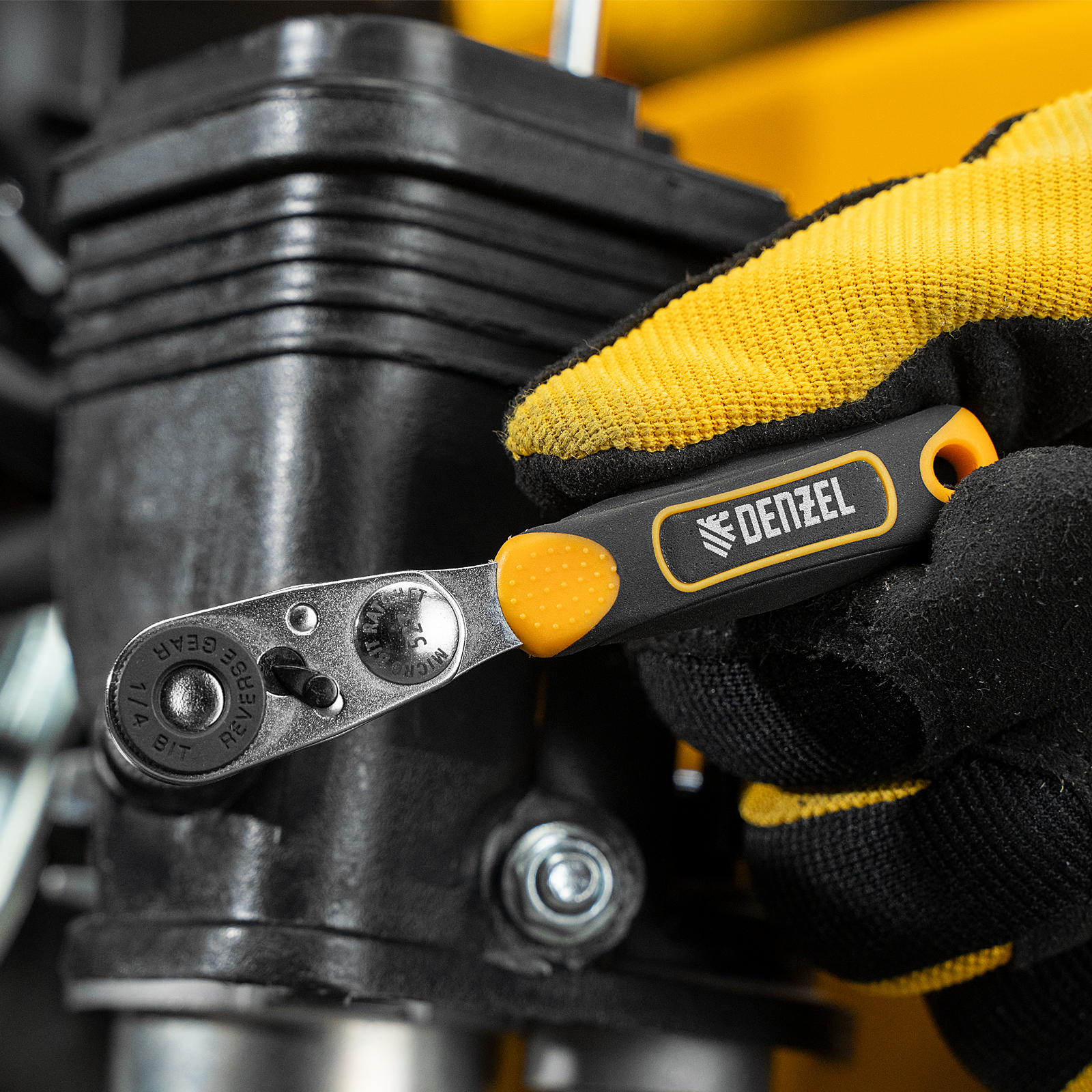 Ключ-трещотка для бит 1/4", 52 зуба, CrMo, адаптер для торцевых головок Denzel в Воронеже