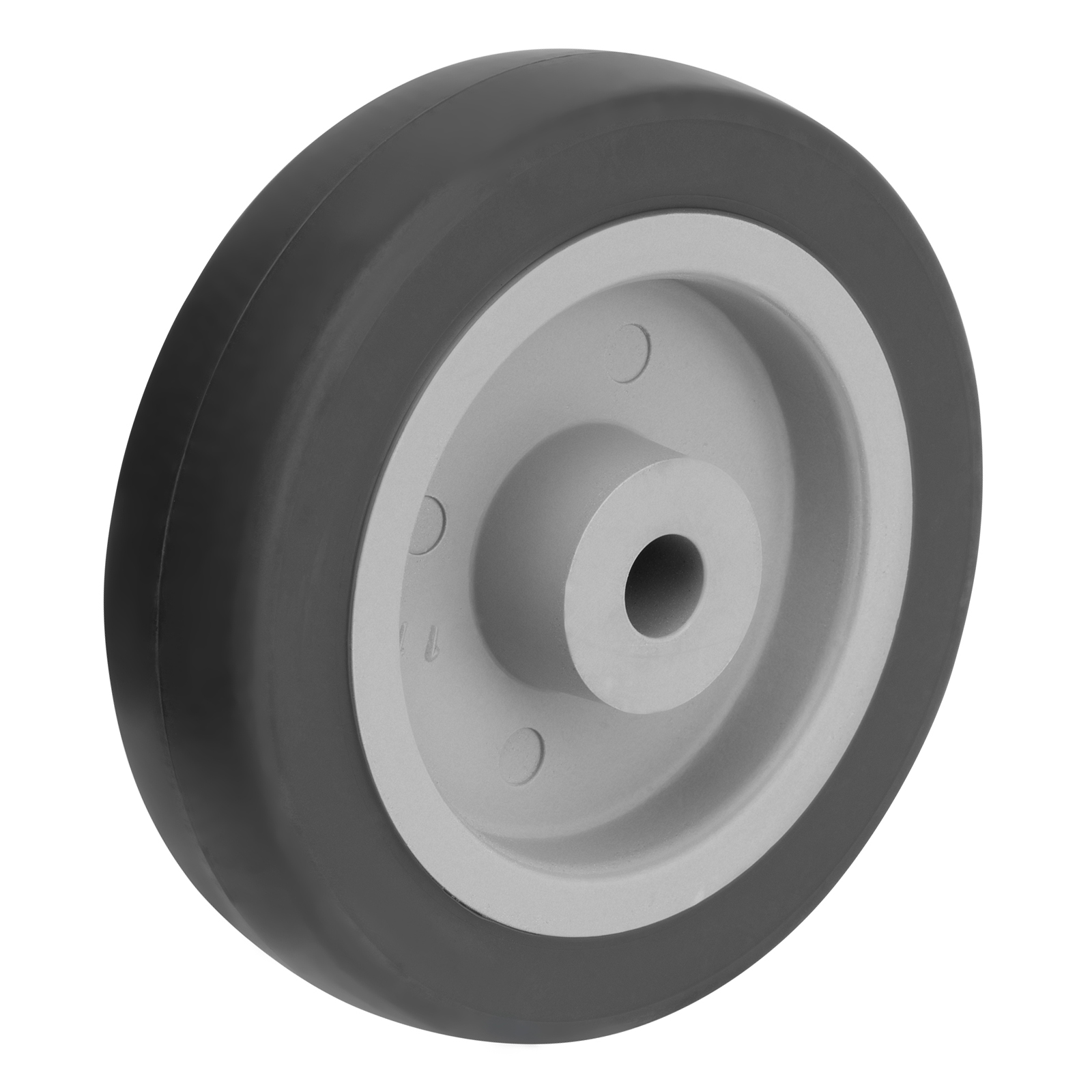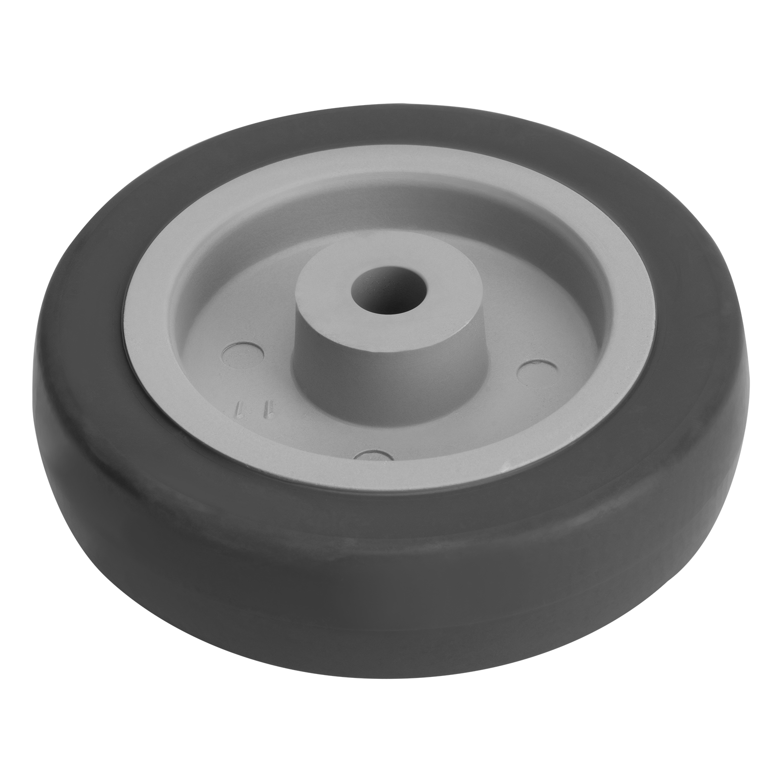 - Универсальность — контактная поверхность выполнена из термопластичной серой резины, поэтому колесо может применяться на различных покрытиях, долгое время сохраняя рабочие качества.