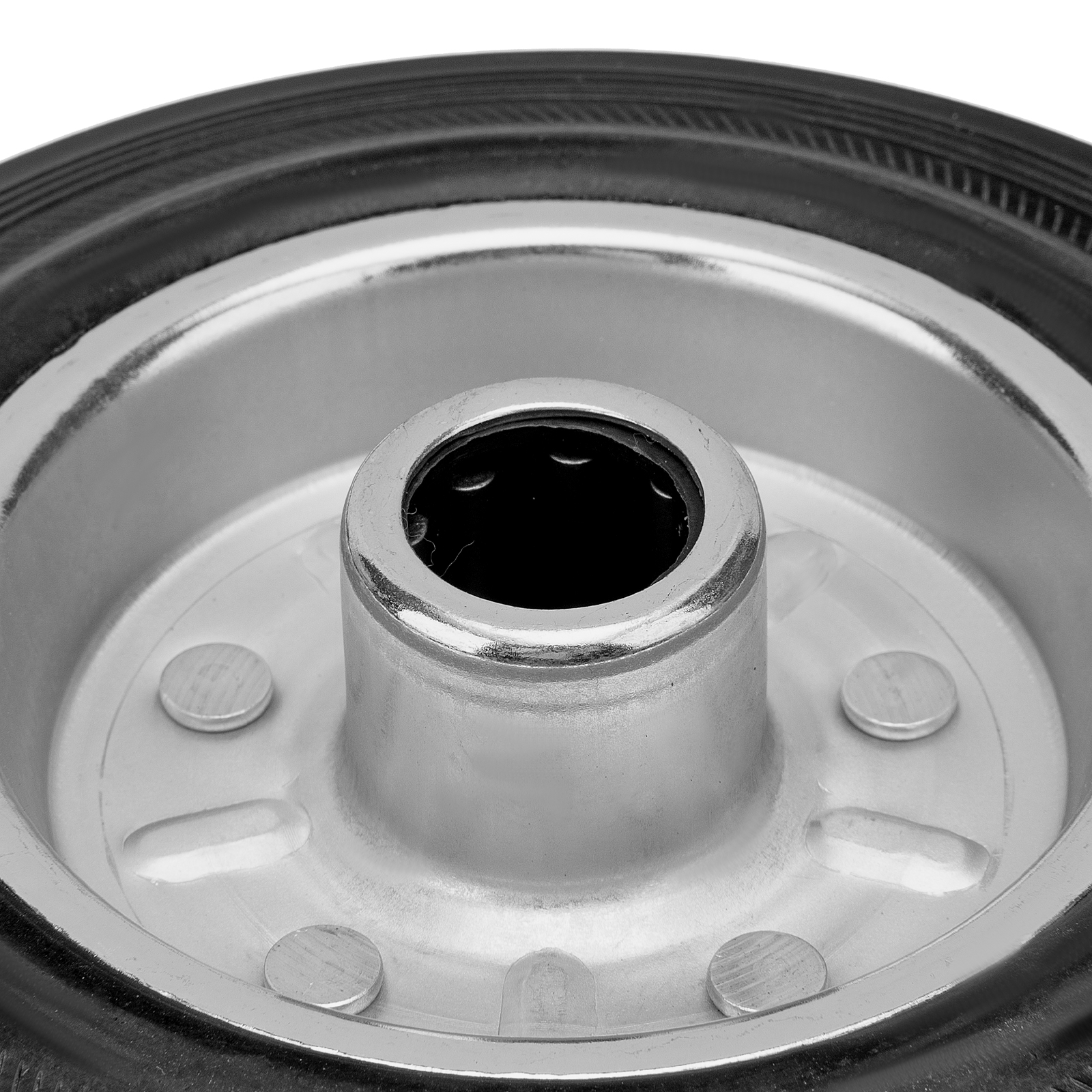 - Универсальность — контактная поверхность выполнена из прочной резины, поэтому колесо может применяться на различных покрытиях, долгое время сохраняя рабочие качества.