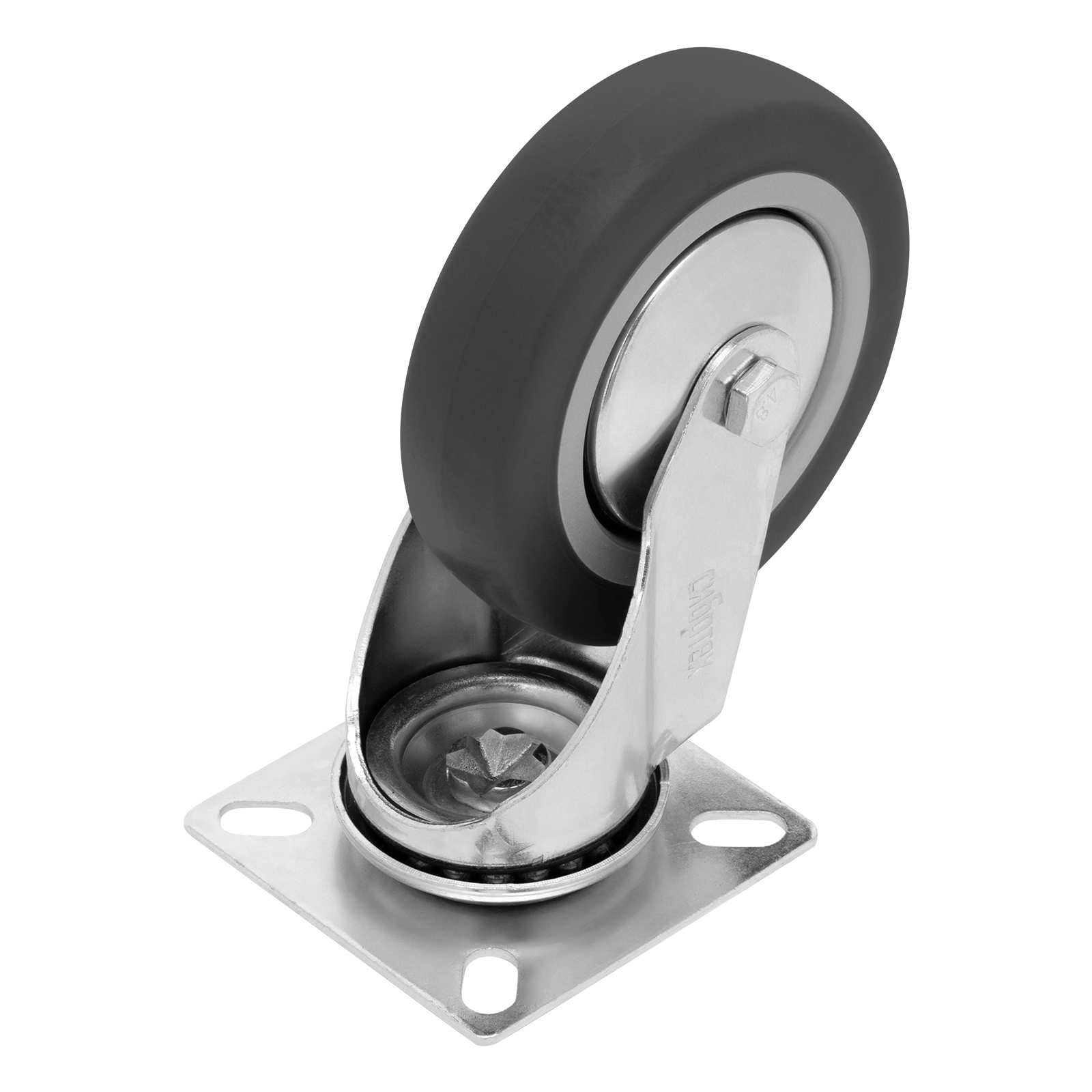 Колесо поворотное Сибртех 68715 диаметром 100 мм, с платформенным креплением, имеет грузоподъемность 65 кг и устанавливается на ручные промышленные тележки. Выдерживает температуру от -25 до +50 °C, устойчиво к воздействию ультрафиолета и влаги, поэтому подходит для эксплуатации как внутри помещения, так и снаружи. Поворотный механизм облегчает маневрирование. Колесо используется для перемещения грузов на производстве или на складах.