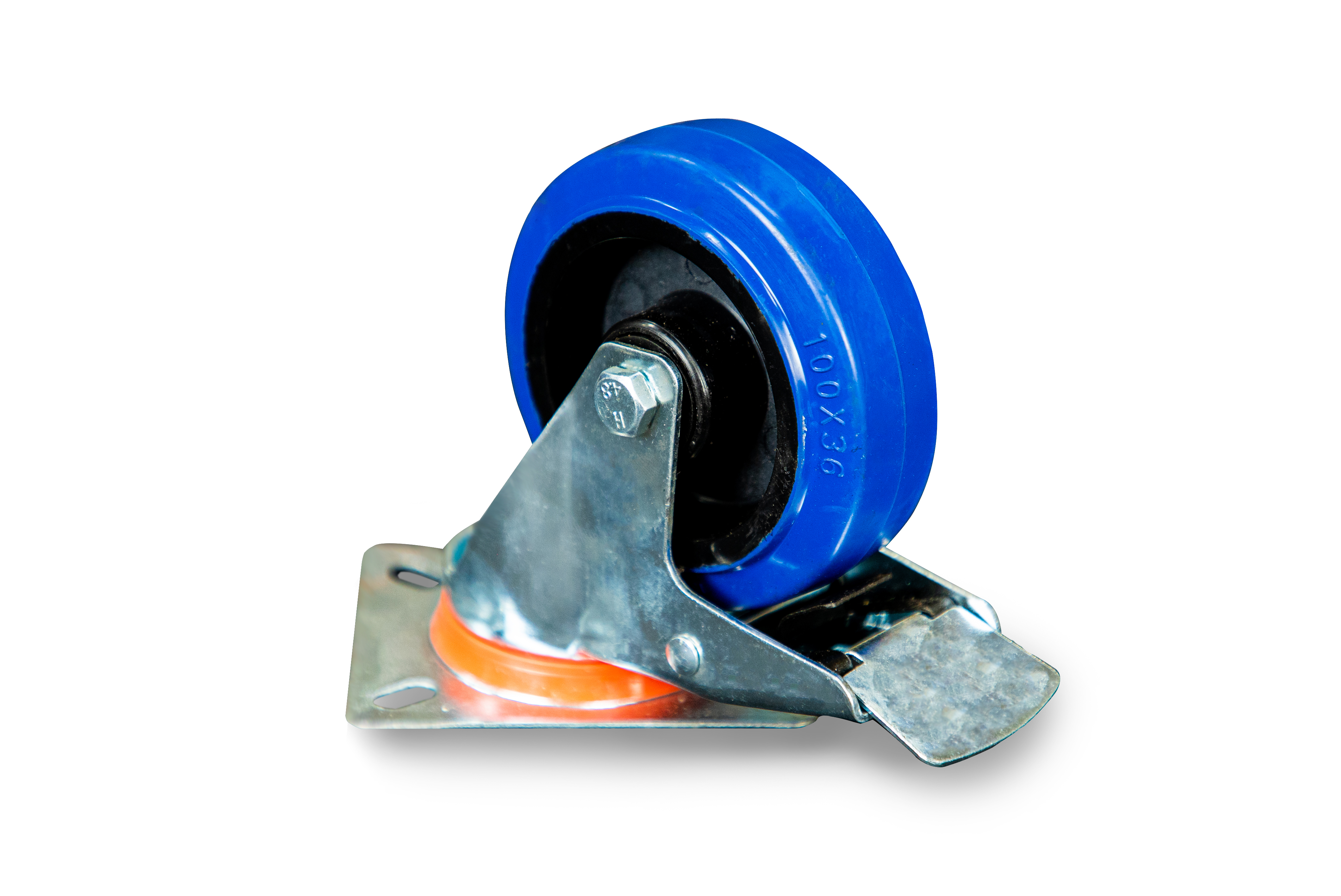 Колесо поворотное из эластичной резины MW70 100 мм с тормозом в Воронеже