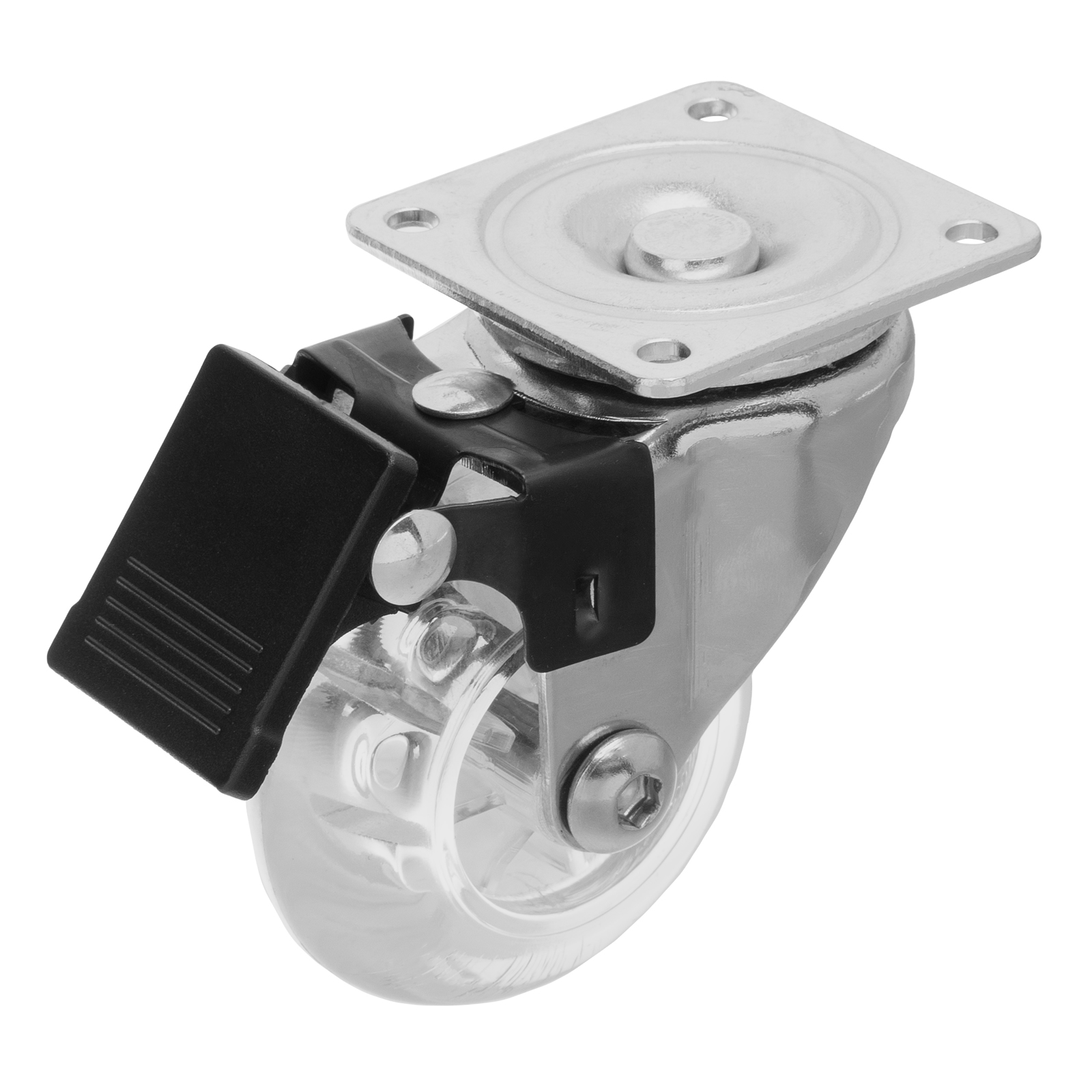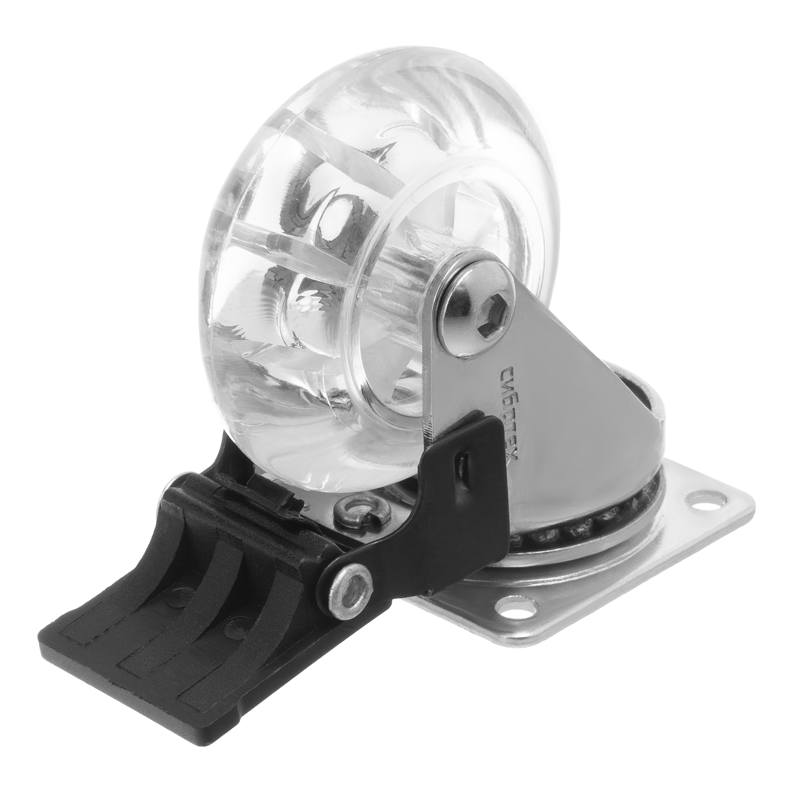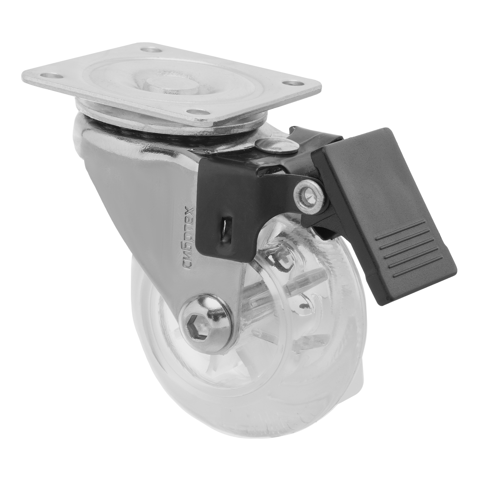 Колесо ПУ прозрачное поворотное с тормозом d-50 мм, крепление платформенное Сибртех в Воронеже