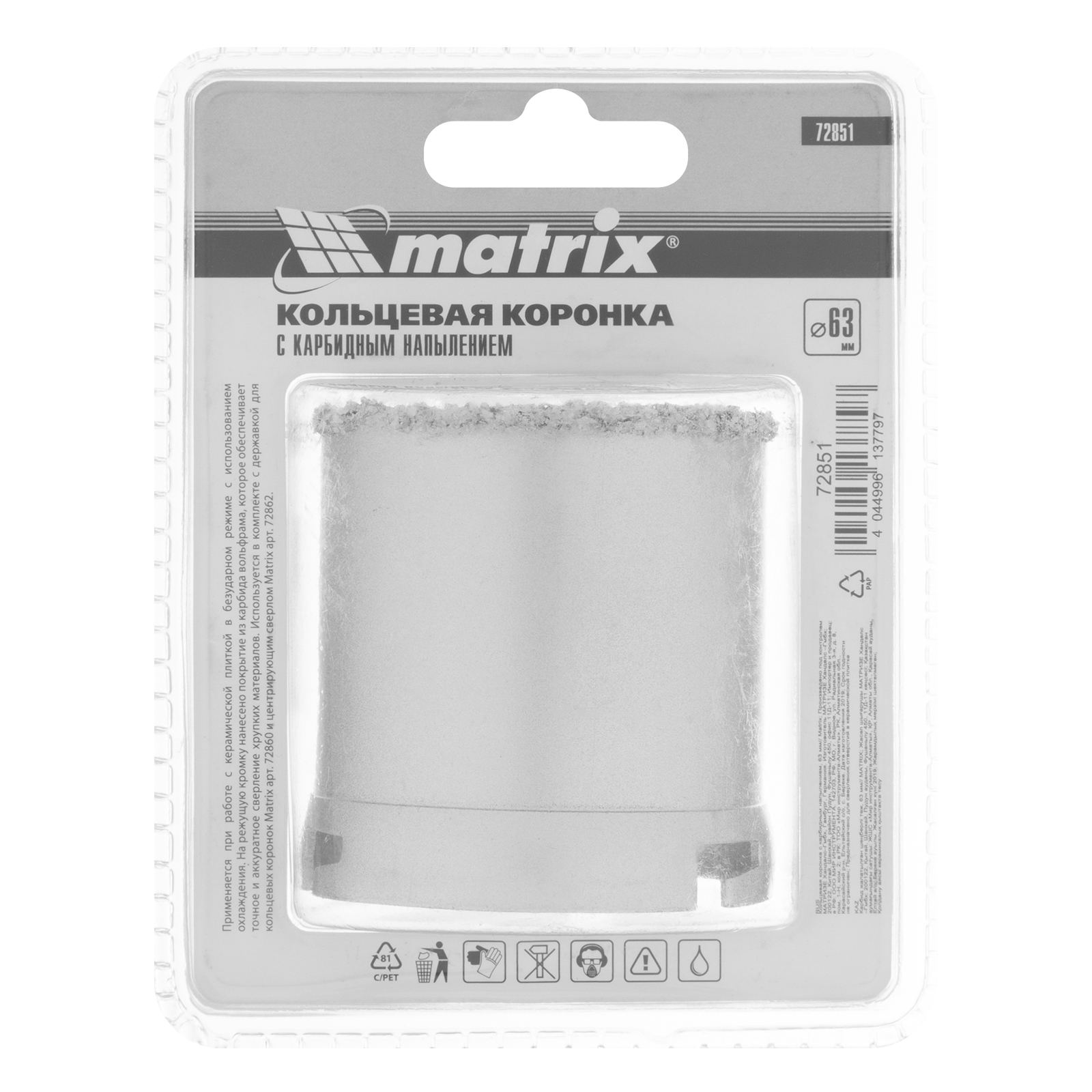 Кольцевая коронка с карбидным напылением, 63 мм Matrix в Воронеже