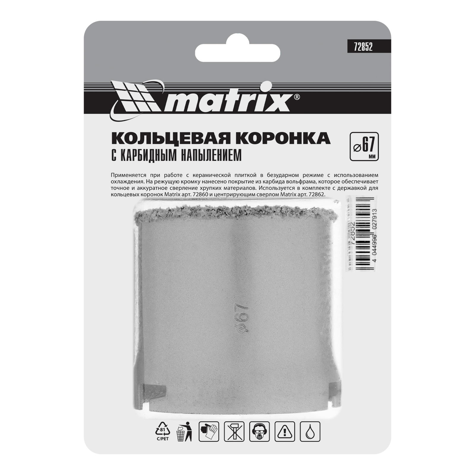 Кольцевая коронка с карбидным напылением, 67 мм Matrix в Воронеже