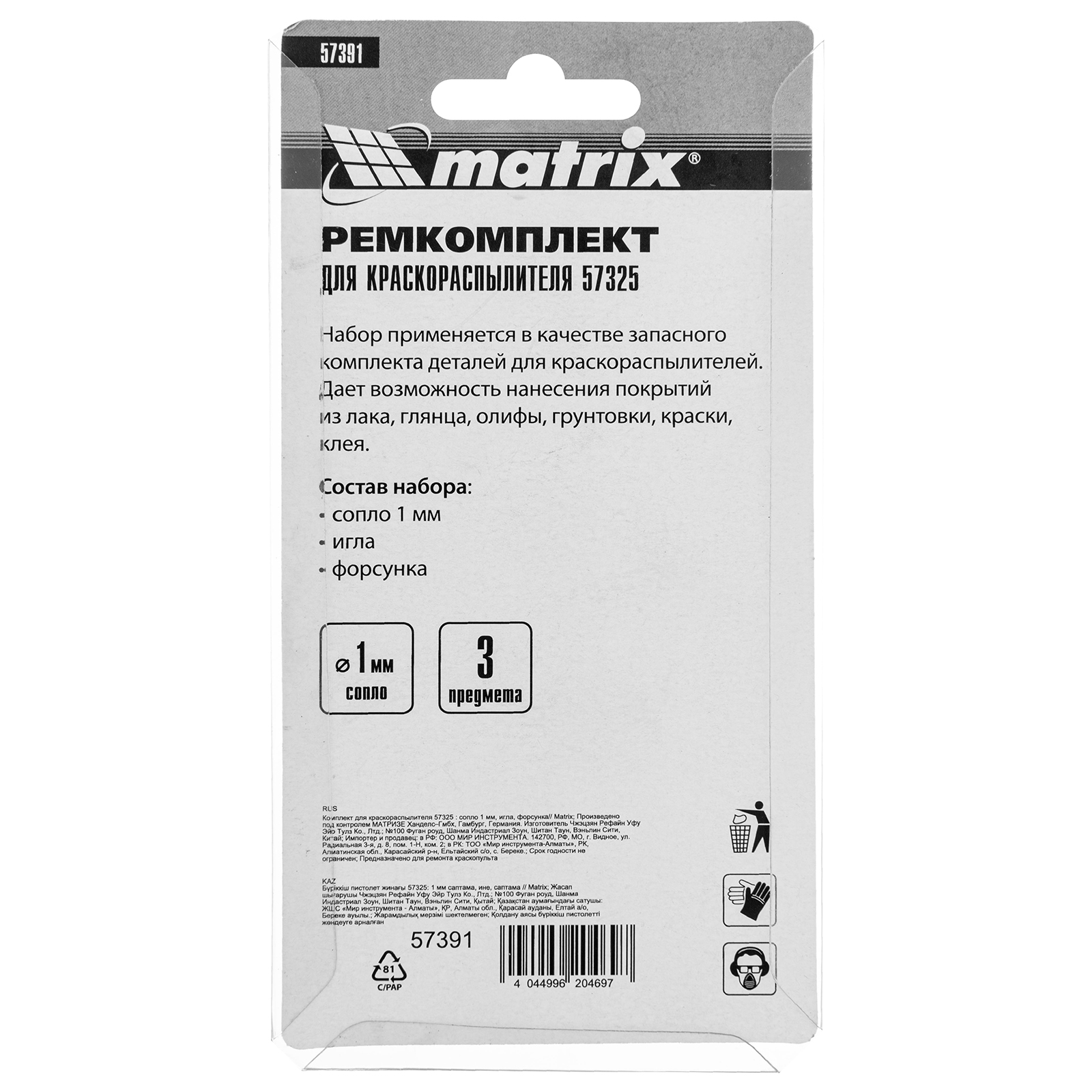 Комплект для краскораспылителя 57325 : сопло 1 мм, игла, форсунка Matrix в Воронеже