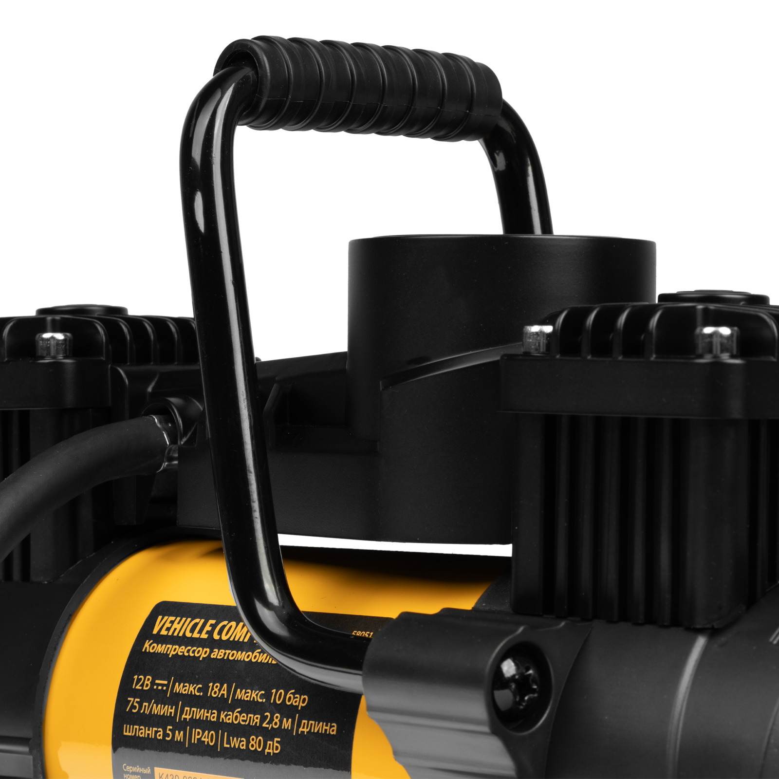 Автомобильный двухпоршневой компрессор Denzel AC-75 58051 производительностью 75 л/мин, с LED-фонарем, работает от сети 12 В, поддерживает давление 10 атм. и предназначен для быстрой и эффективной накачки шин, резиновых матрацев и других надувных предметов. Для этого в комплект поставки входит 3 насадки. Компрессор подключается к автомобильному аккумулятору при помощи клемм. Благодаря двухпоршневой конструкции отличается высокой производительностью — накачка шины R16 занимает не более 3-4 минут. Станет незаменимым помощником в поездке и на отдыхе.