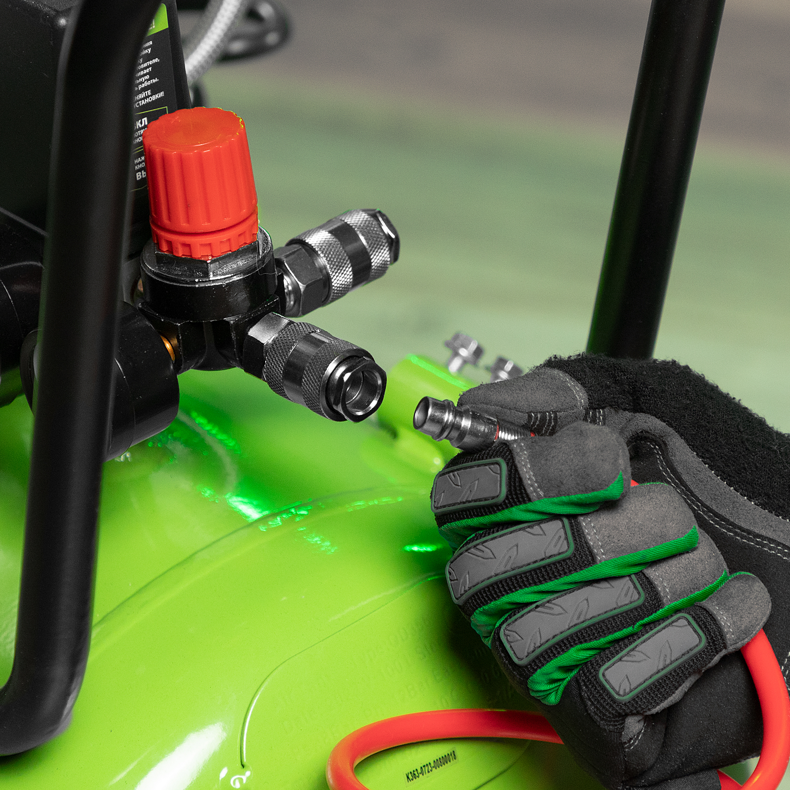 - Простое подключение — выходной быстросъемный коннектор позволяет подсоединить пневмоинструмент одним движением.