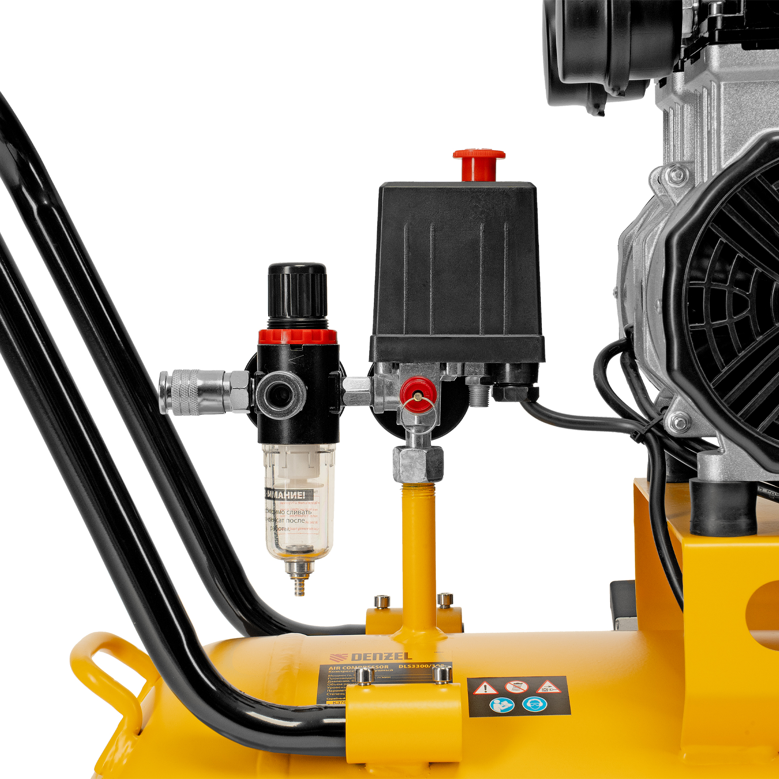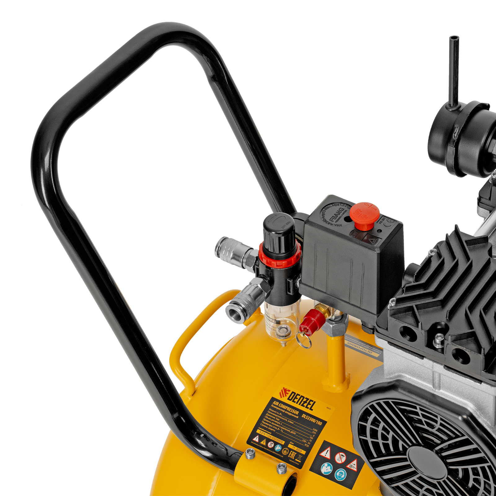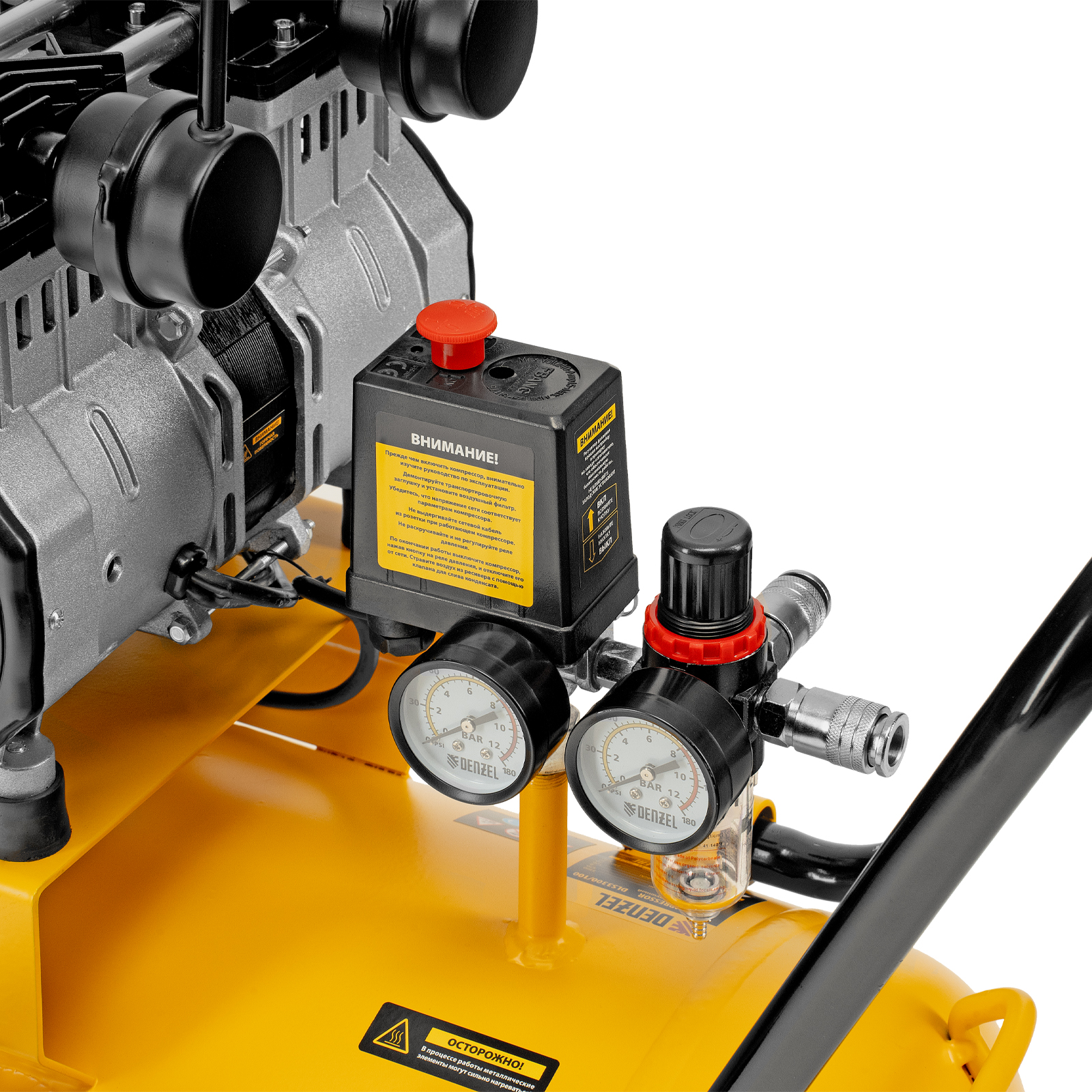 Безмасляный малошумный компрессор Denzel DLS 3300/100 58032 с блоком управления, мощностью 3300 (3 х 1100) Вт, объемом ресивера 100 л и производительностью 570 л/мин предназначен для обеспечения пневмоинструмента сжатым воздухом, подаваемым под давлением до 8 бар. Позволяет подключить пневматический заклепочник, дрель, шлифмашину, ударный гайковерт и т.д. Оптимален для работы с краскопультом и для продувки электронных компонентов, т. к. в сжатом воздухе отсутствуют частицы масла. Компрессор пригодится в мастерской, гараже, на строительной площадке.