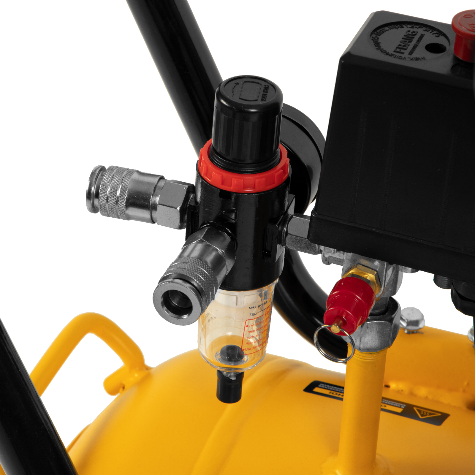 - Высокое качество очистки воздуха — фильтры надежно задерживают посторонние частицы, а влагоотделитель препятствует попаданию конденсата в пневмомагистраль.