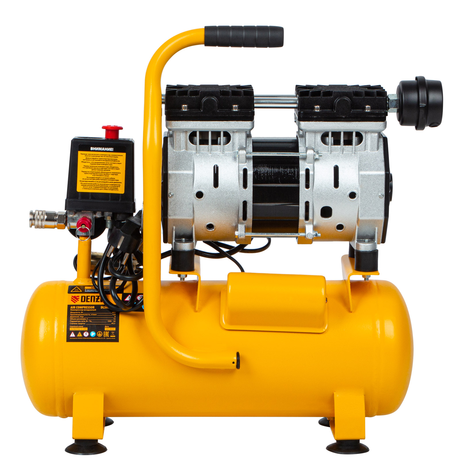 Компрессор DLS650/10 безмаслянный малошумный 650 Вт, 120 л/мин, ресивер 10 л Denzel в Воронеже
