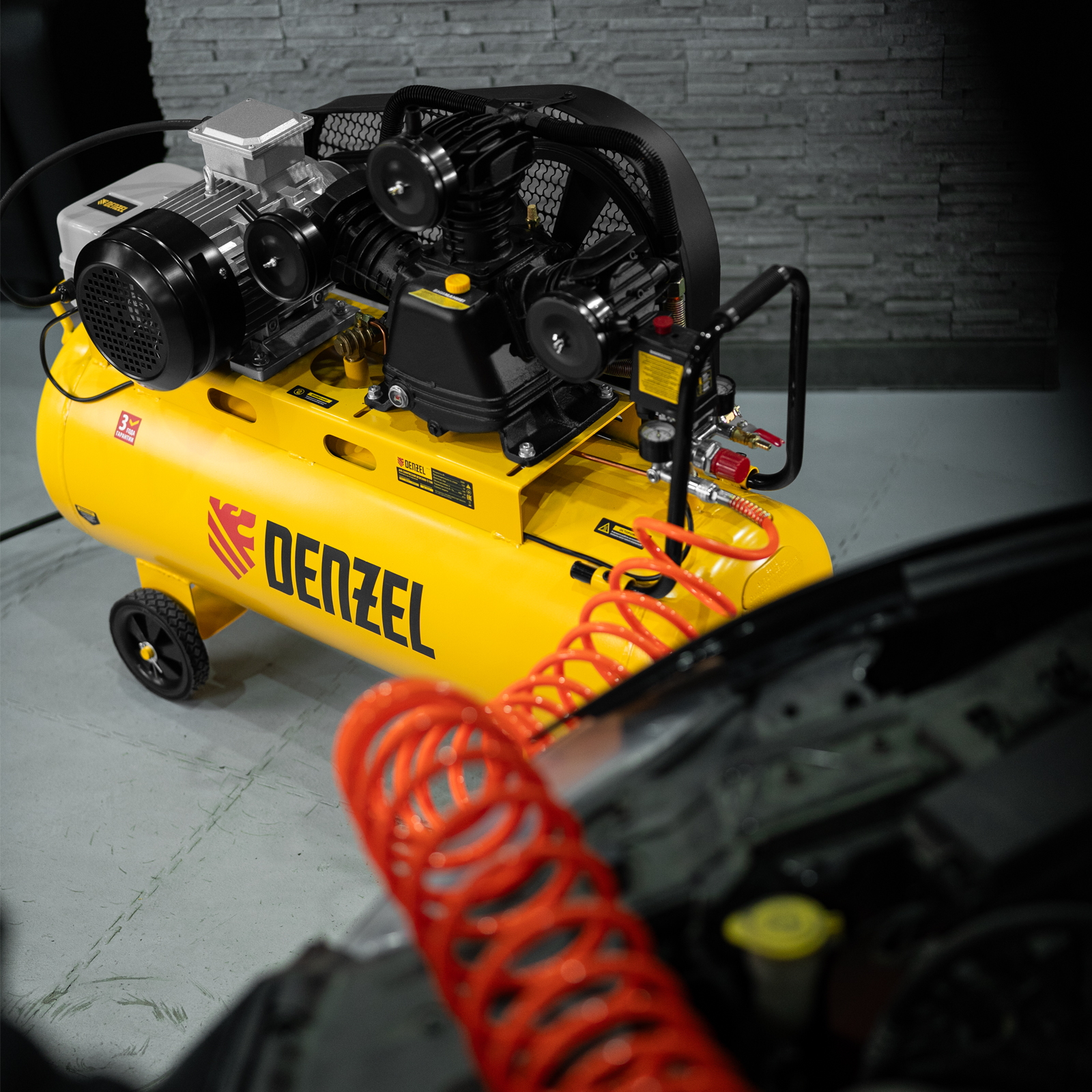 Компрессор воздушный BCW3000-T/100, ременный привод, 3.0 кВт, 100 литров, 520 л/мин Denzel в Воронеже