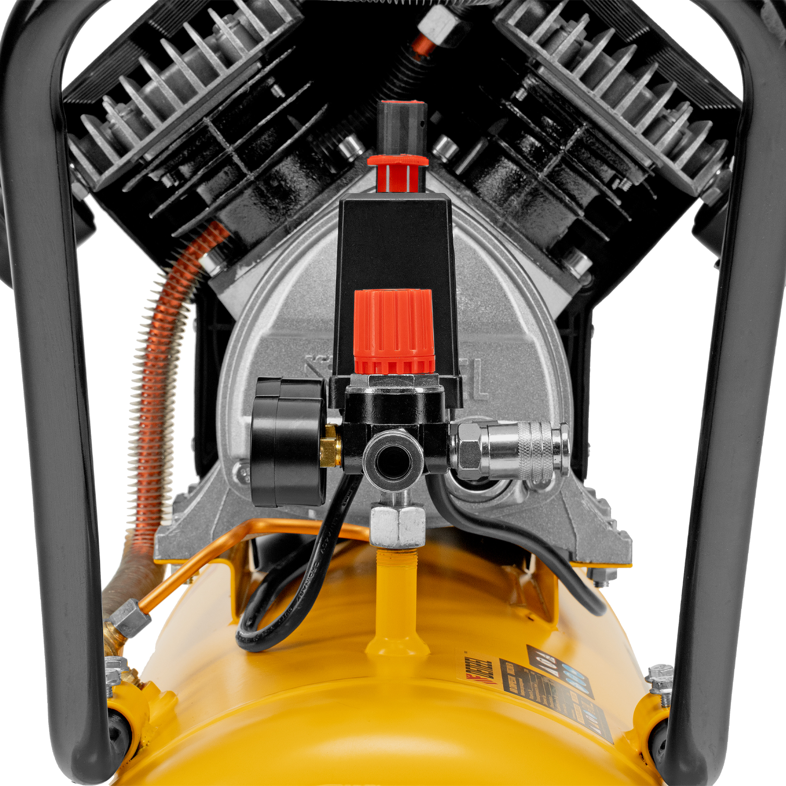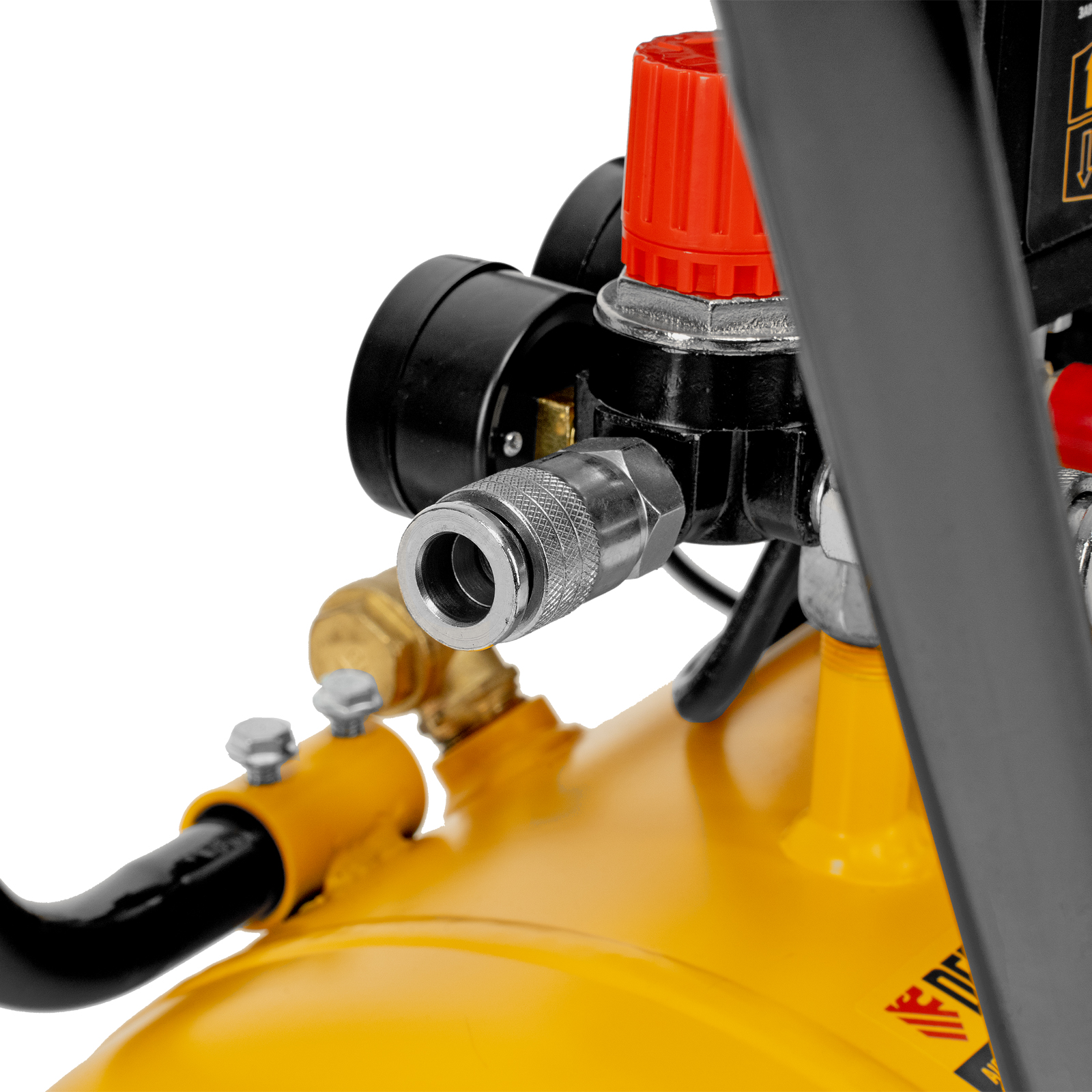 - Надежные опоры — резиновые ножки обеспечивают устойчивость компрессора и эффективно поглощают вибрации.
