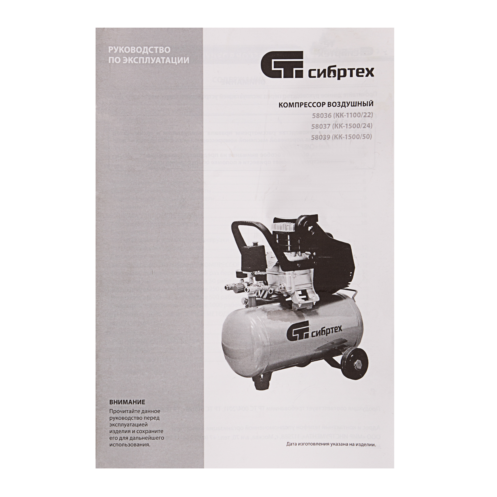 Компрессор воздушный КК-1500/50, 1.5 кВт, 198 л/мин, 50 л, прямой привод, масляный Сибртех в Воронеже