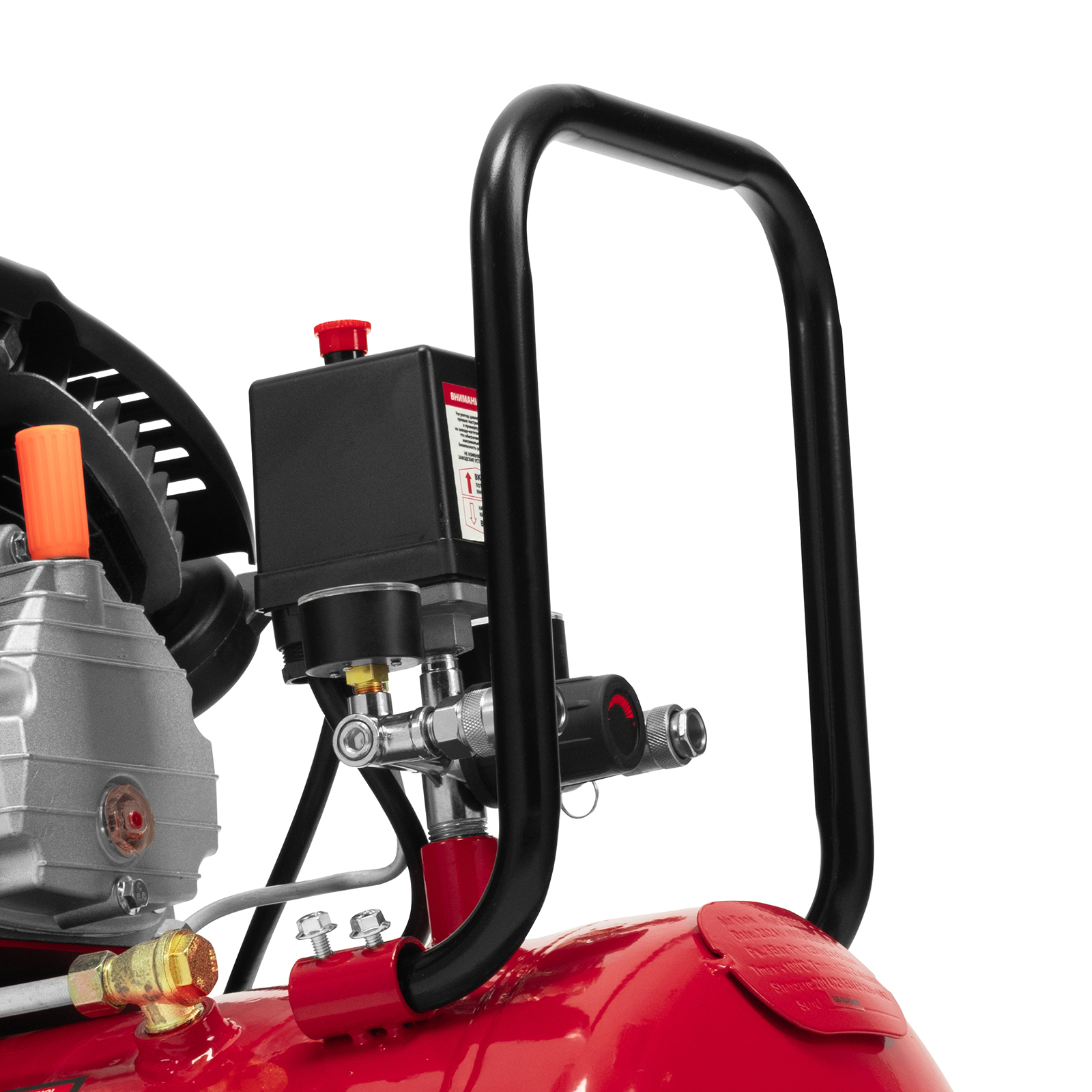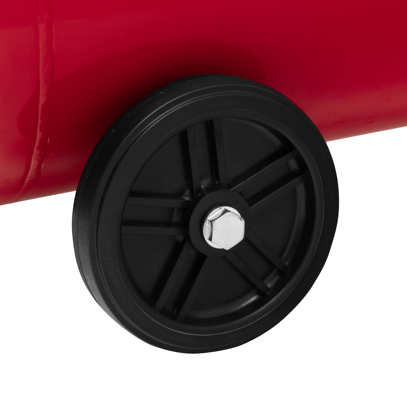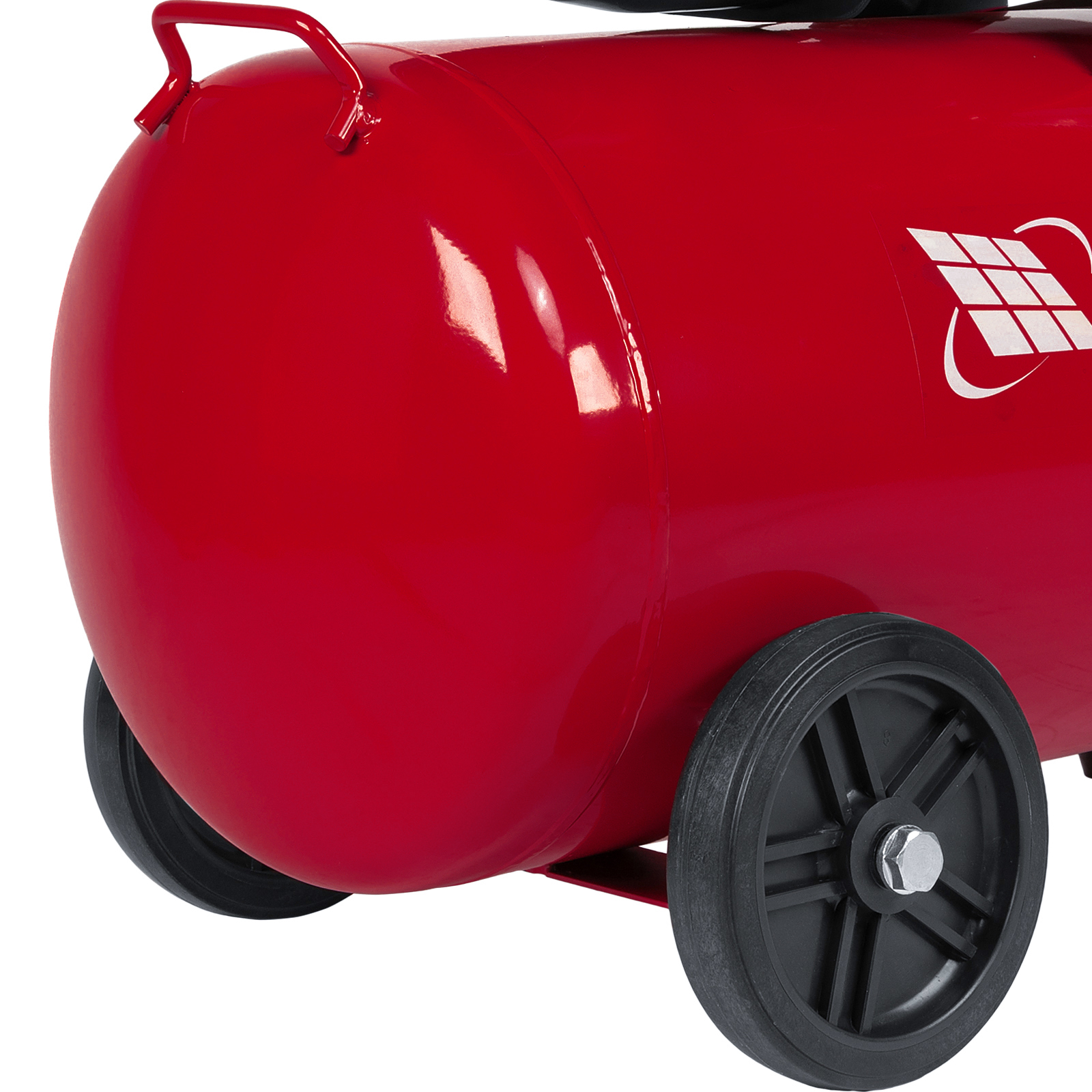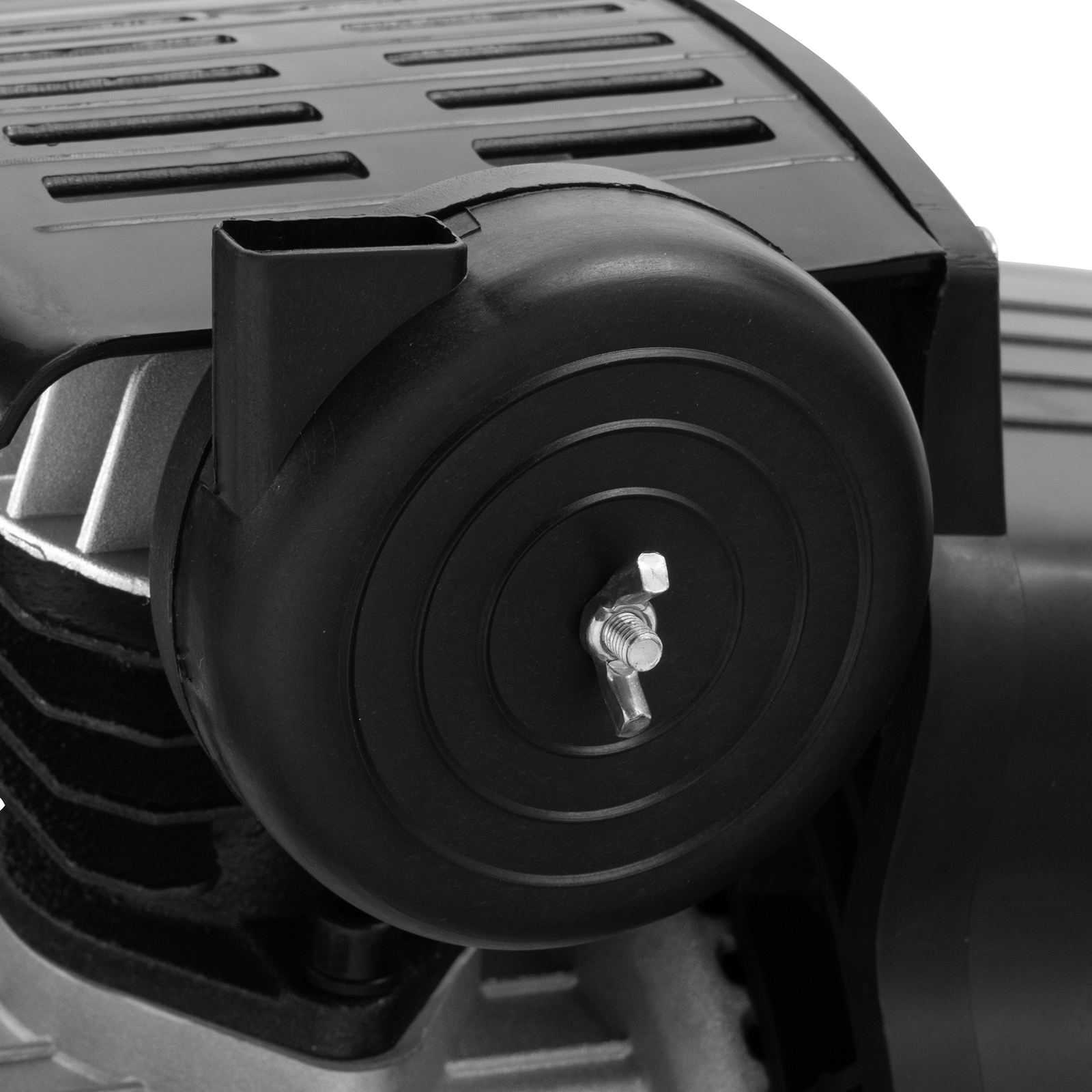 - Мобильность — благодаря колесам и рукоятке компрессор удобно разворачивать и перемещать по рабочей площадке.