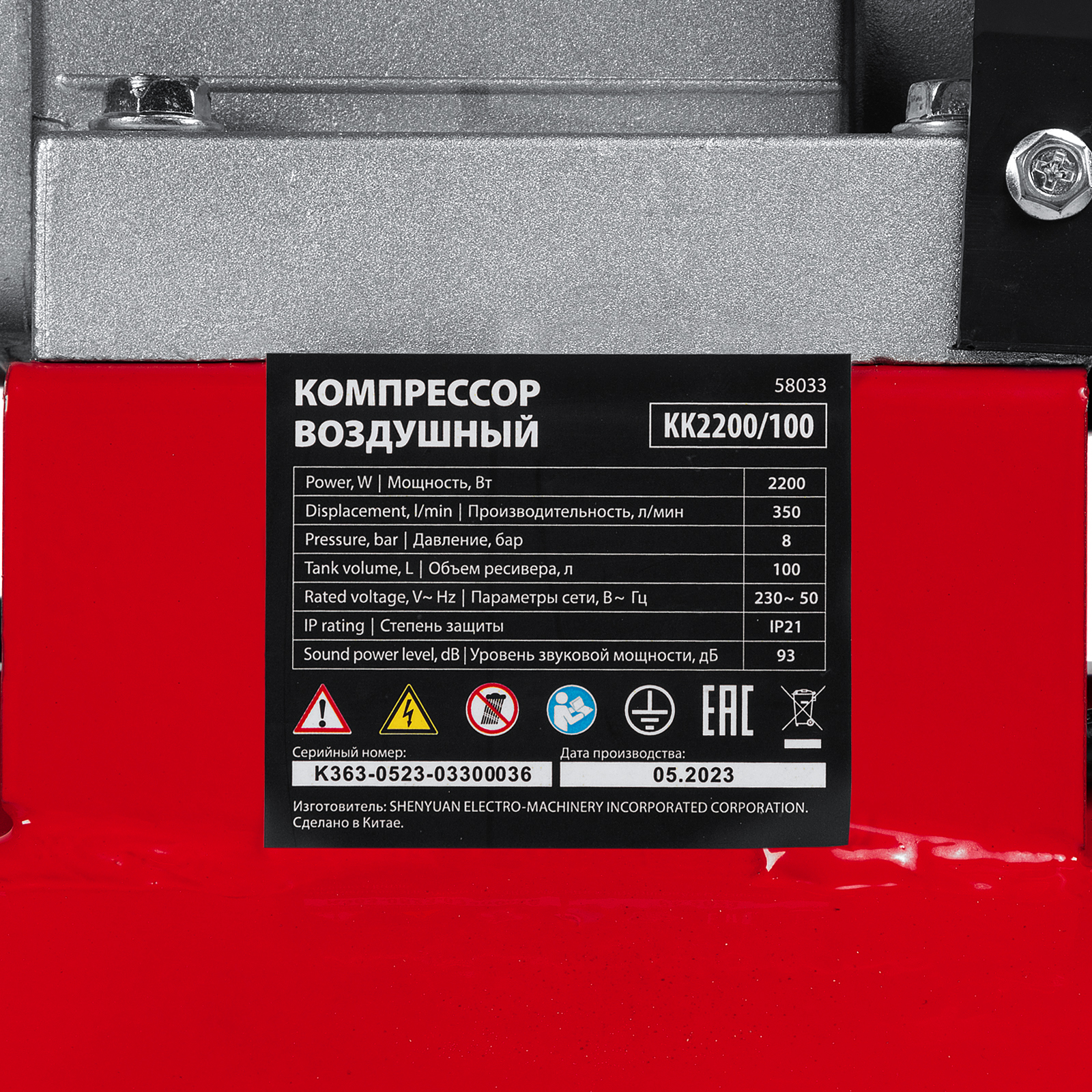 Компрессор воздушный КК-2200/100, 2,2 кВт, 350 л/мин, 100 л, прямой привод, масляный MTX в Воронеже