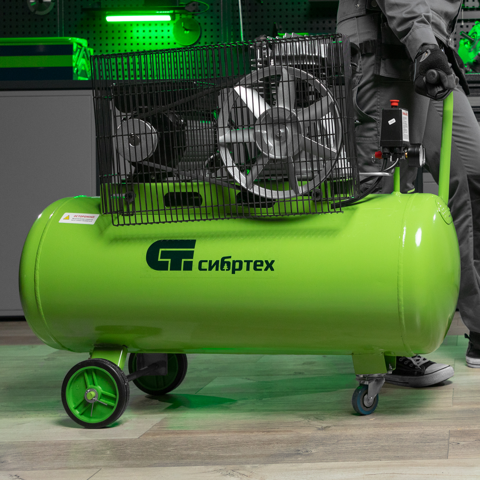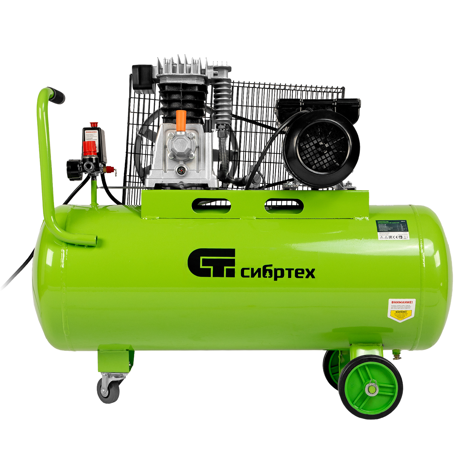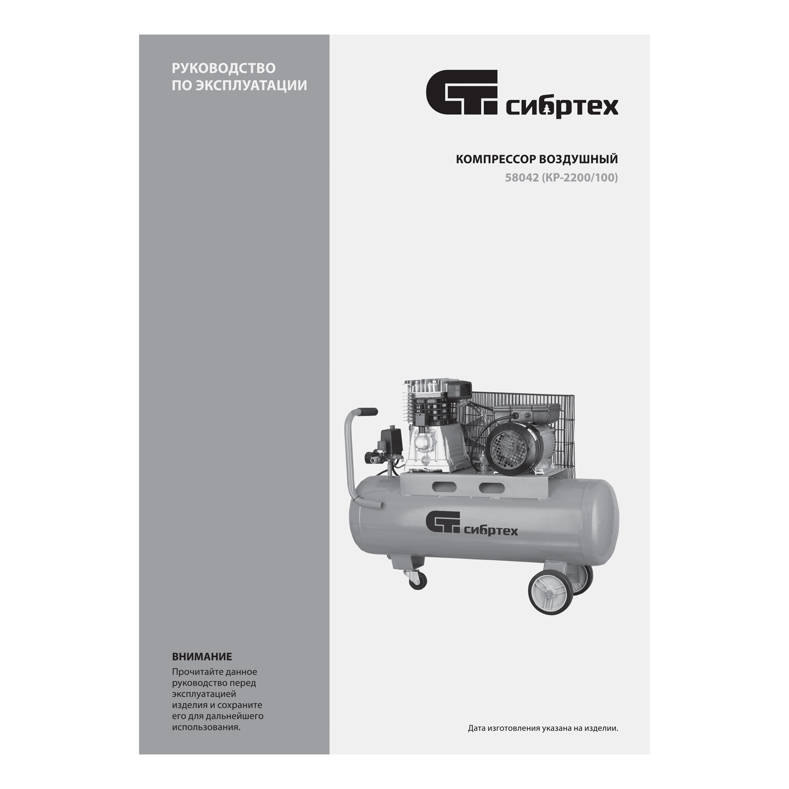 Компрессор воздушный КР-2200/100, 2.2 кВт, 350 л/мин, 100 л, ременной привод, масляный Сибртех в Воронеже