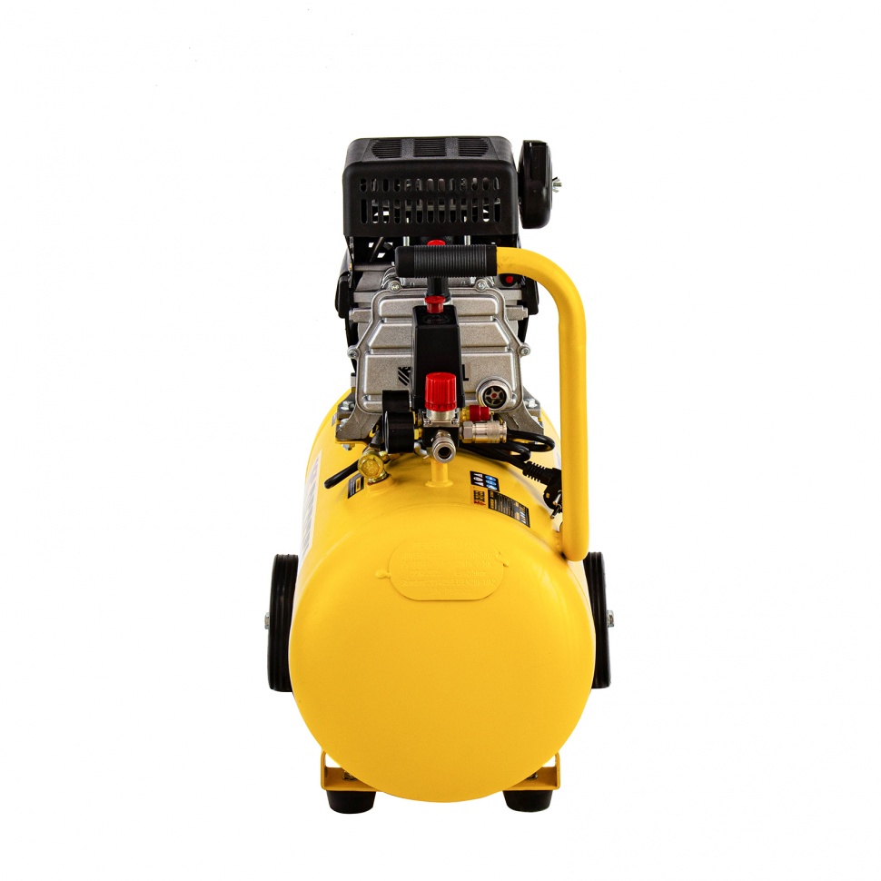 - Маневренность — благодаря ручке и 2 колесам компрессор легко перемещать по рабочей зоне.
