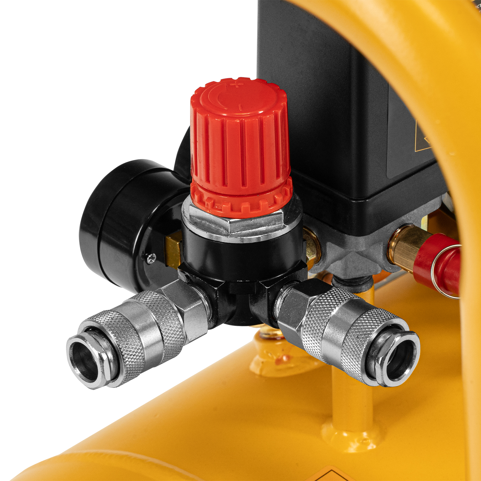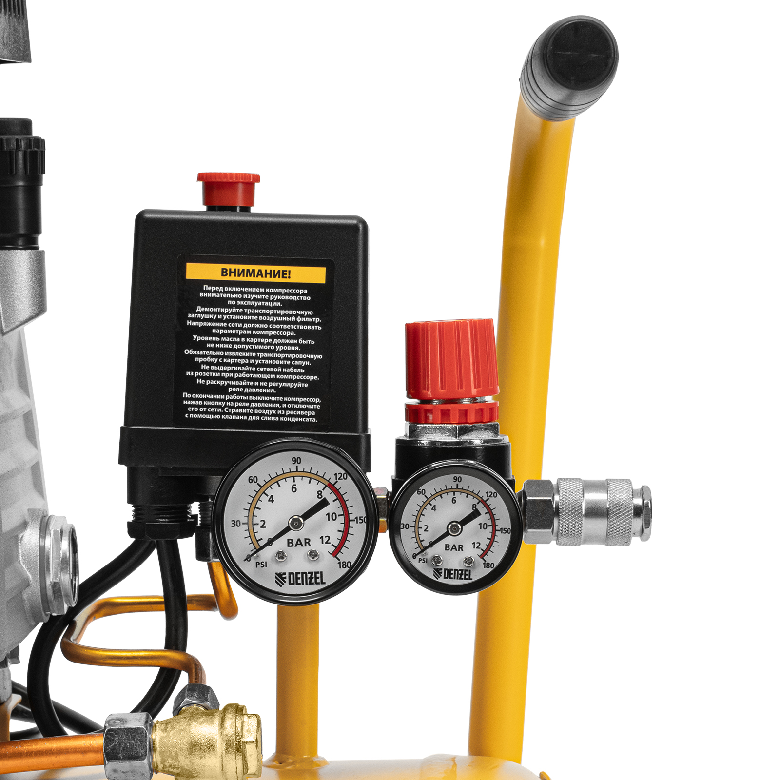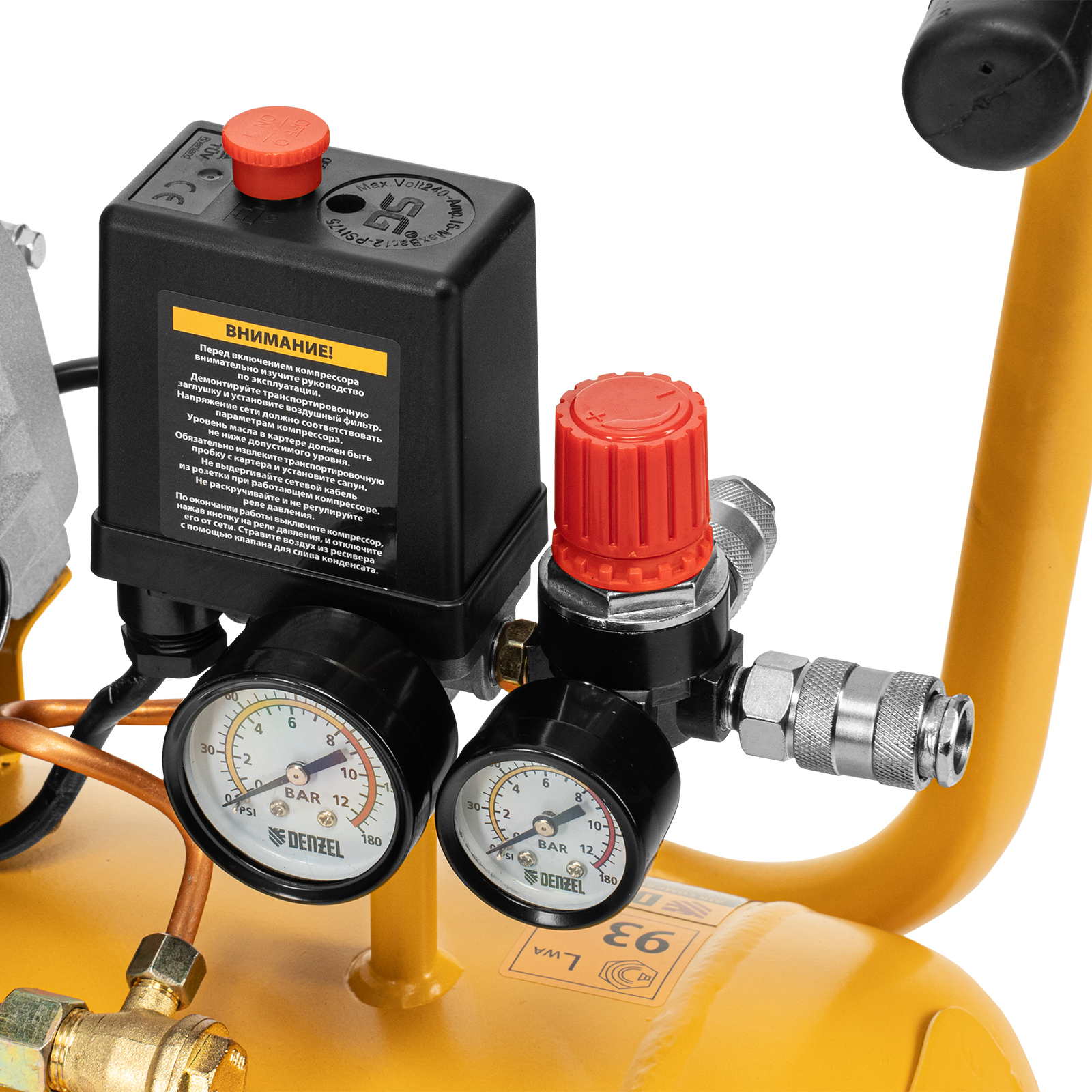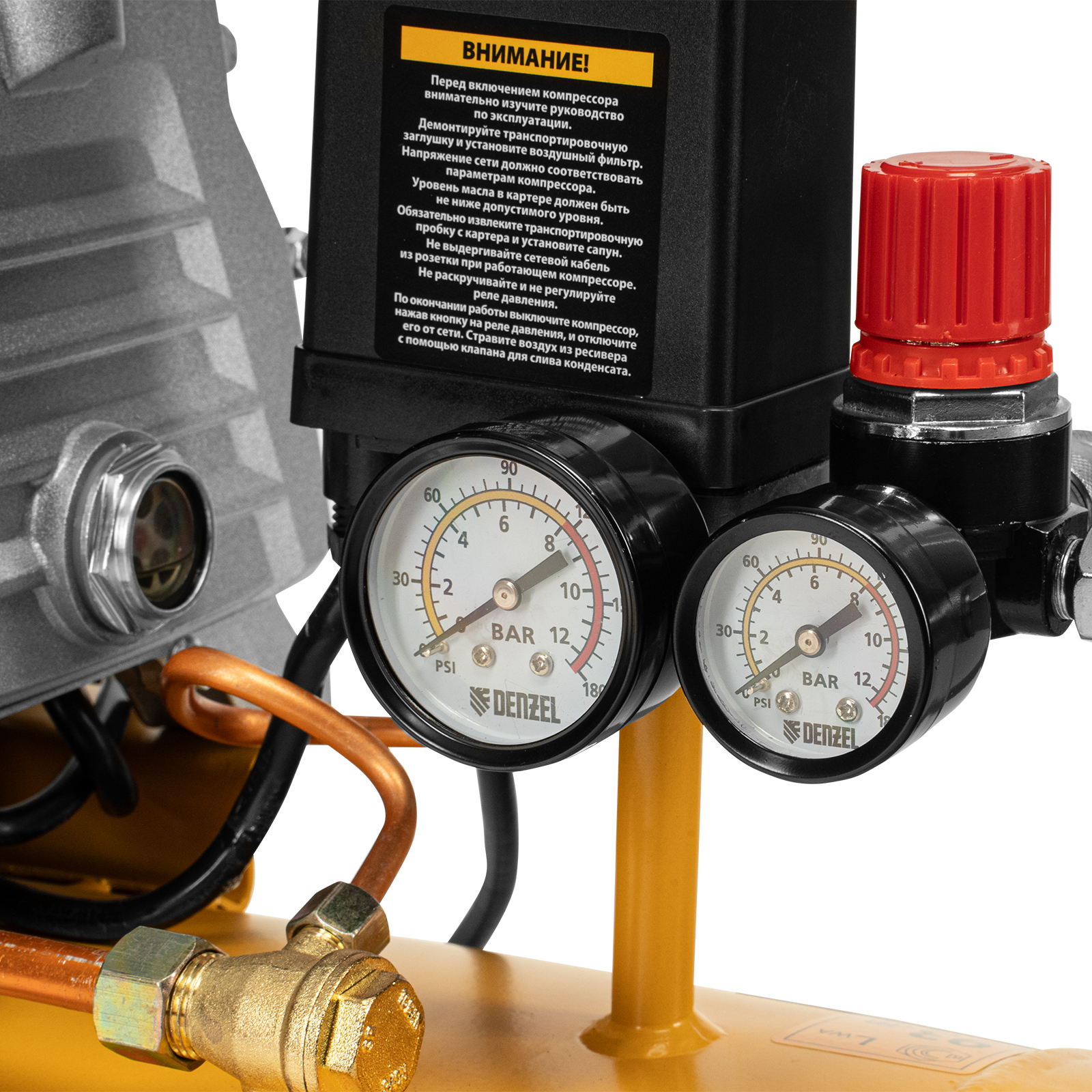 - Два манометра — легко контролировать давление в пневмолинии и в ресивере.
