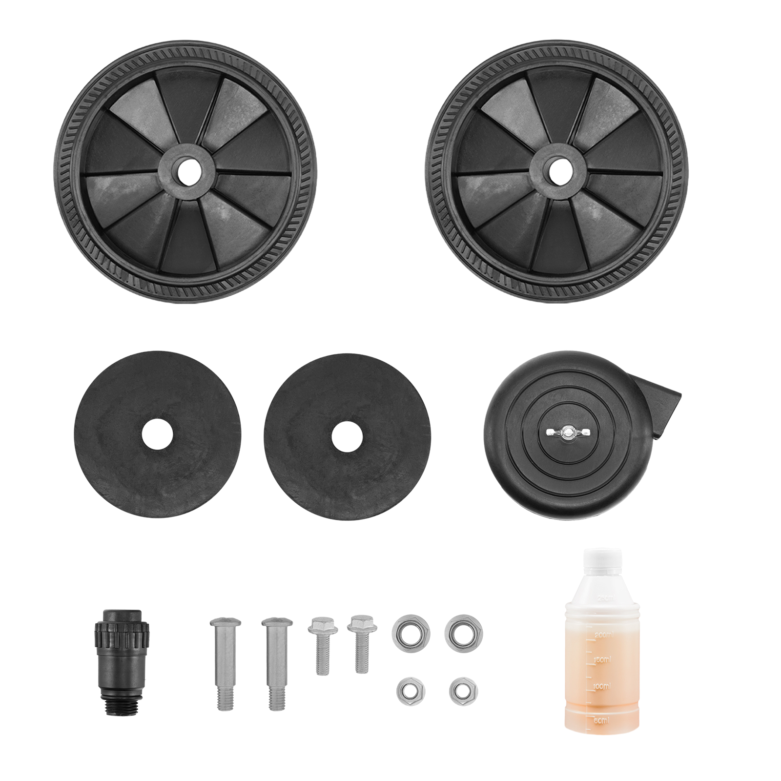 Компрессор - 1 штКолесо с крепежом - 2 штВоздушный фильтр - 1 штВиброопора с крепежом - 2 штСапун - 1 штМасло компрессорное минеральное, марка DAB 40 - 180 млРуководство по эксплуатации с гарантийным талоном - 1 шт |